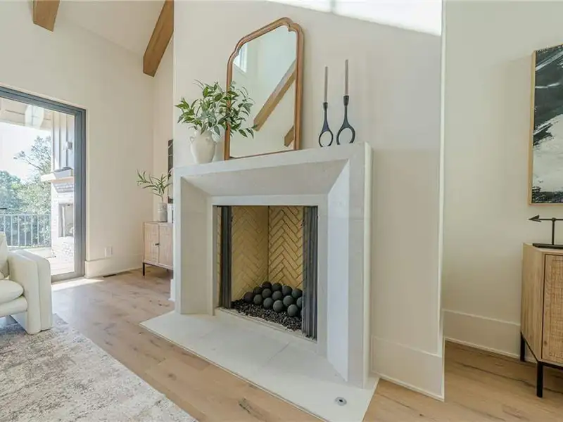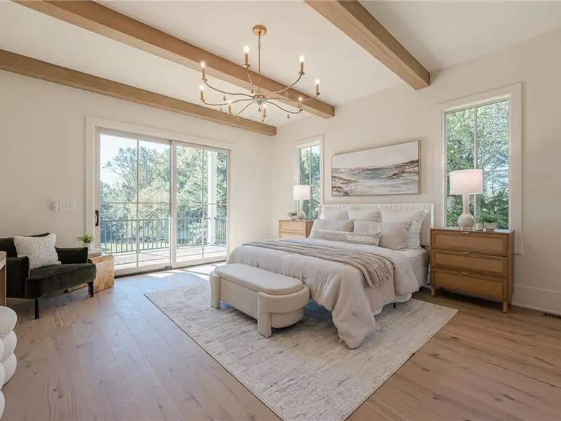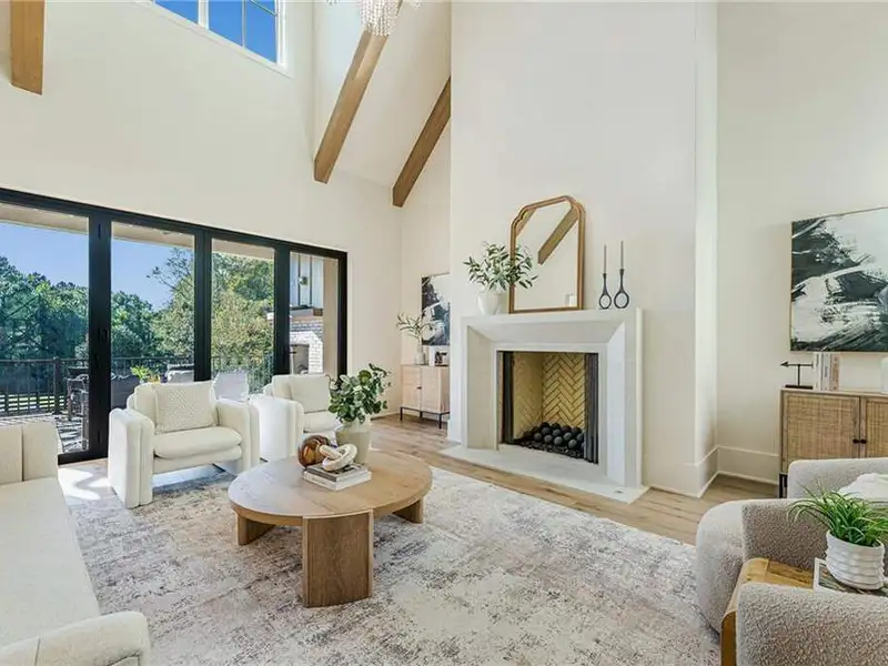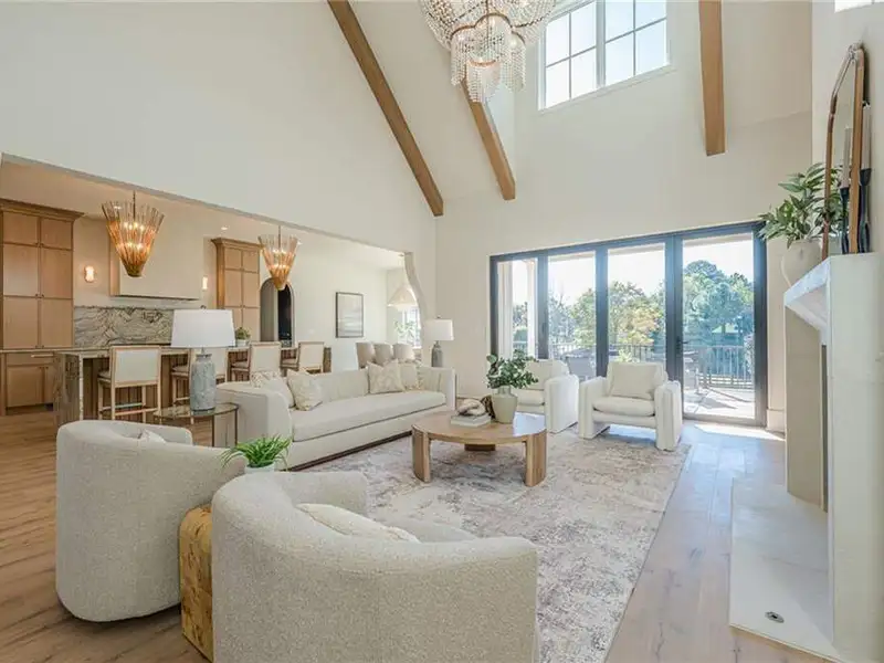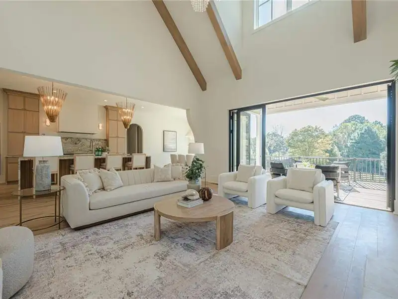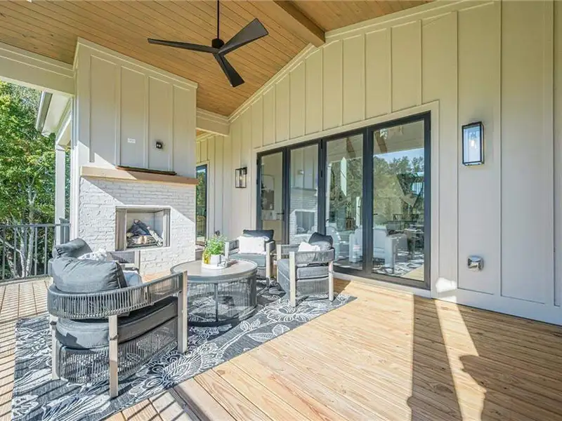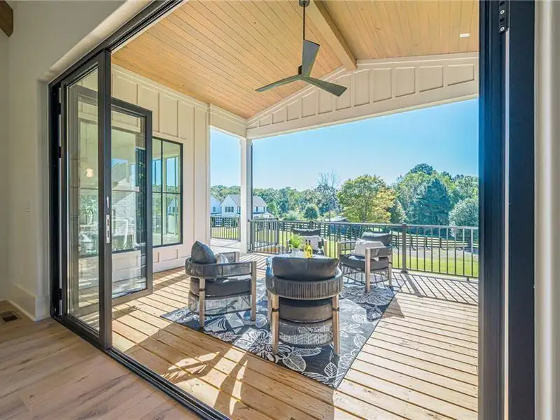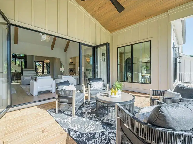 - 12' accordion doors to beamed porches
