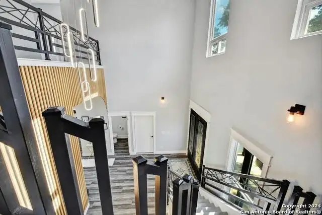 - Upstairs lounge area with covered balcony