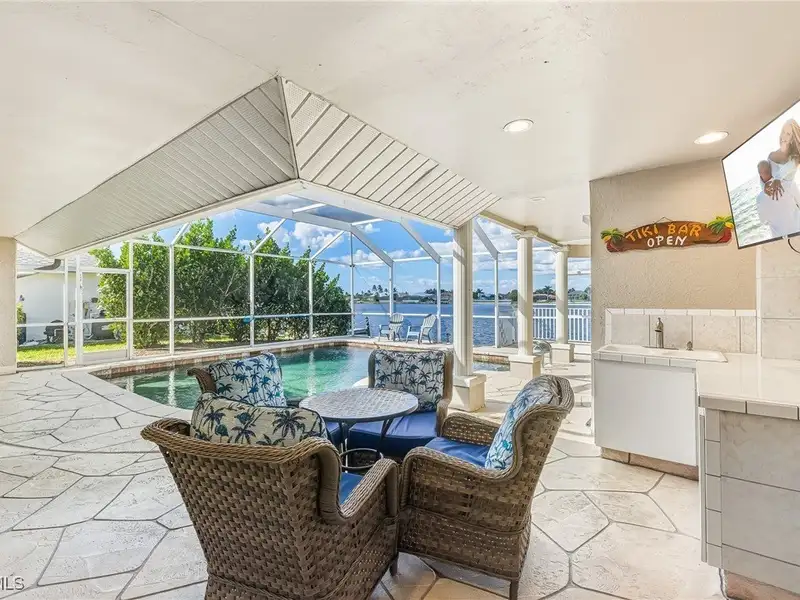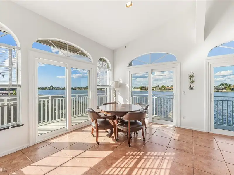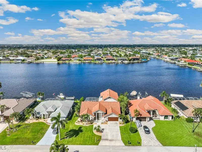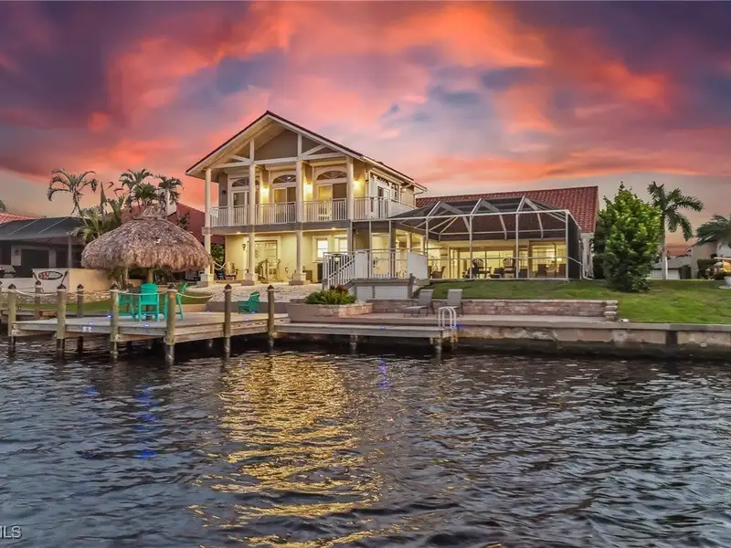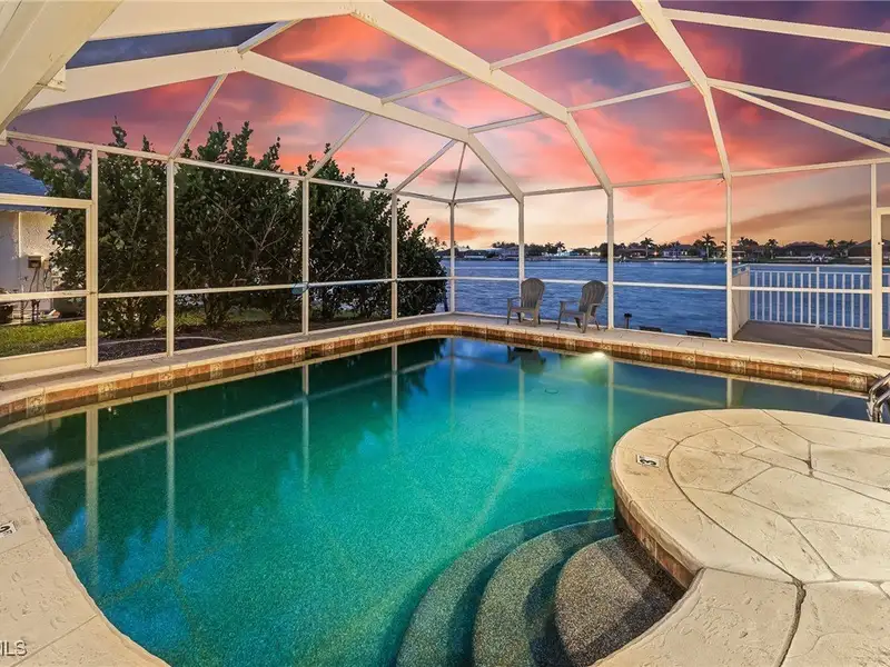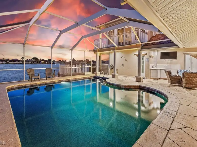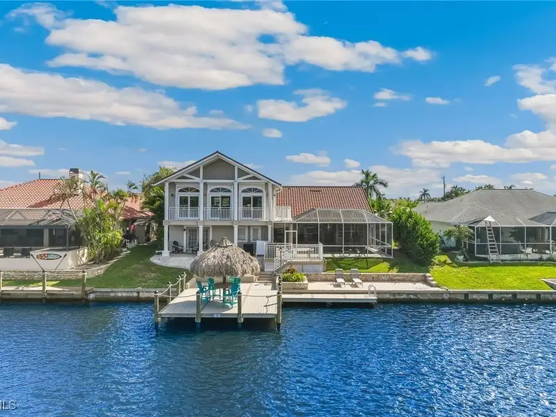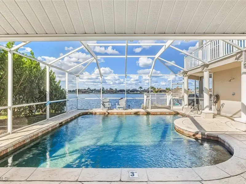Welcome to a waterfront sanctuary unlike any other-perched on the shores of Lake Finisterre, Cape Coral's largest saltwater lake, offering breathtaking panoramic views and Gulf access for the ultimate Southwest Florida lifestyle! This spacious 3-bedroom, 2.5-bath home offers over 3,700 sq. ft. of indoor living, perfectly designed for those who crave water views, luxury, and functionality. Located in the highly desirable southwest, just minutes from Cape Harbour, this home offers an easy 20-minute boat ride to open water with just one bridge out-ideal for both casual cruisers and serious boaters. What truly sets this property apart are the incredible lake views that greet you from nearly every angle. Whether you're sipping coffee in the breakfast nook, entertaining from the upstairs lounge, or unwinding poolside, the expansive water vistas and vibrant skies deliver unforgettable sunrises and sunsets daily. Step inside to find an open, elegant layout with a formal sitting room, a large dining area, and a gourmet kitchen with solid-surface counters and stainless-steel appliances-all oriented to maximize lakefront sightlines. The primary suite is a true retreat with French doors leading to the pool, dual vanities, a soaking tub, walk-in closets, and a private water closet. Upstairs, an enormous bonus room/lounge offers endless possibilities: currently used as an entertainment hub complete with bar and poker table, it also features elevated panoramic views of the lake that make it the perfect space for relaxing or hosting guests. Want more? This space could easily be converted into a show-stopping master suite. Outside, enjoy the new 2023 dock with a tiki hut, perfect for fishing, lounging, or launching into the Gulf. The home has also undergone major upgrades including: - New roof (2023) - Fully remodeled lower level with updated plumbing and electrical - New flooring throughout Whether you're looking for a full-time residence, a vacation getaway, or an income property, this one-of-a-kind lakefront stunner delivers it all-with unmatched views, Gulf access, and prime location in one of Cape Coral's most sought-after waterfront communities.