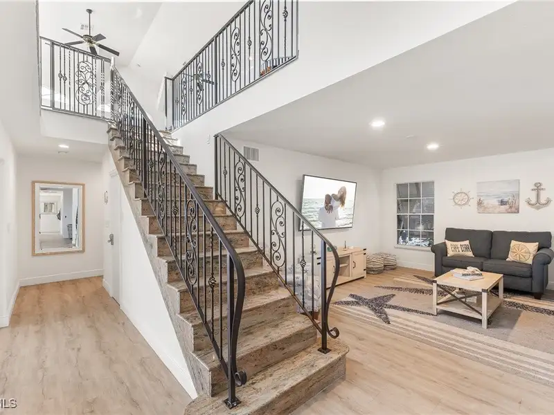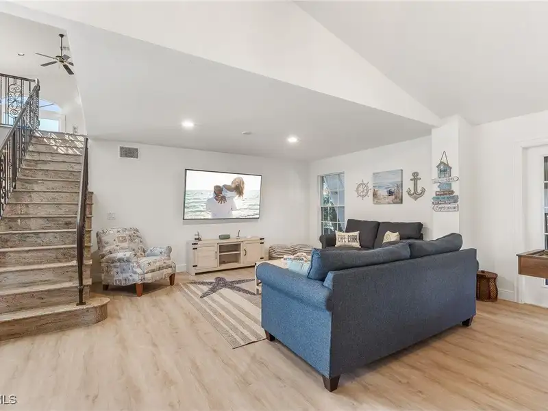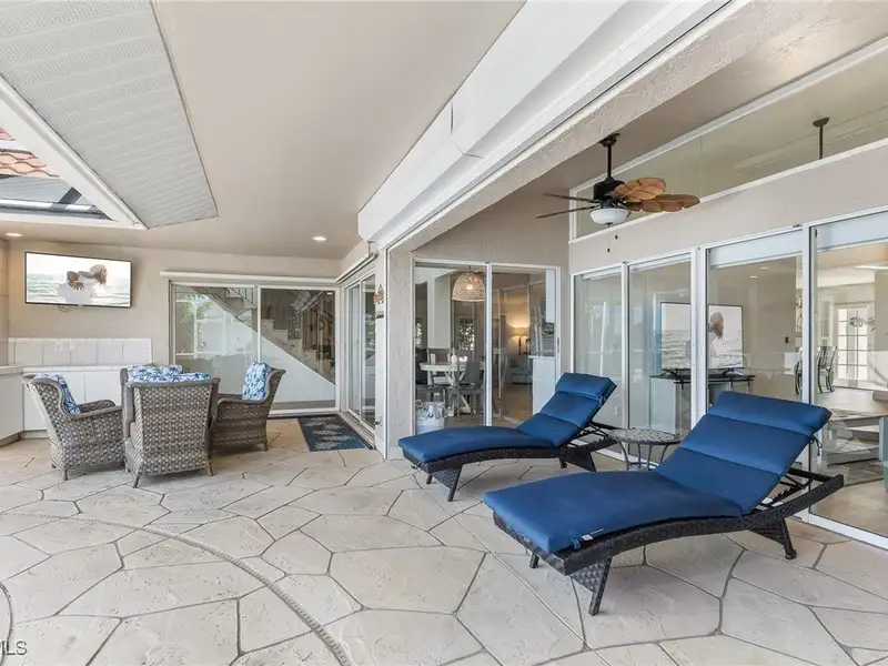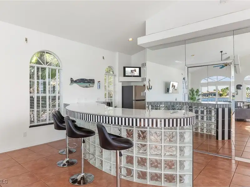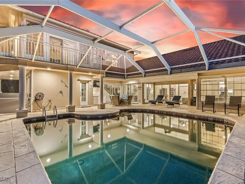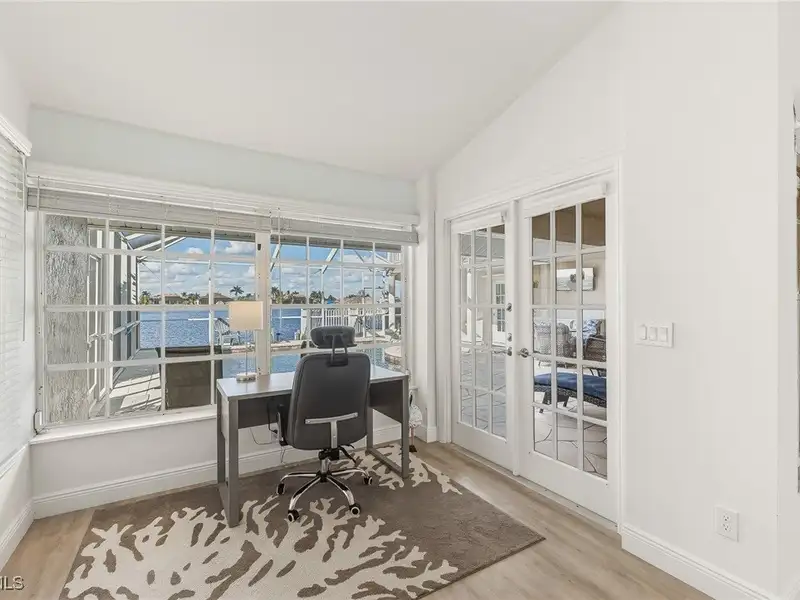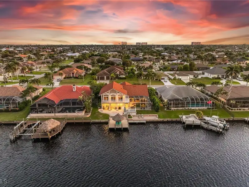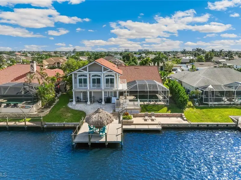 Welcome to a waterfront sanctuary unlike any other-perched on the shores of Lake Finisterre, Cape Coral's largest saltwater lake, offering breathtaking panoramic views and Gulf access for the ultimate Southwest Florida lifestyle! This spacious 3-bedroom, 2.5-bath home offers over 3,700 sq. ft. of indoor living, perfectly designed for those who crave water views, luxury, and functionality. Located in the highly desirable southwest, just minutes from Cape Harbour, this home offers an easy 20-minute boat ride to open water with just one bridge out-ideal for both casual cruisers and serious boaters. What truly sets this property apart are the incredible lake views that greet you from nearly every angle. Whether you're sipping coffee in the breakfast nook, entertaining from the upstairs lounge, or unwinding poolside, the expansive water vistas and vibrant skies deliver unforgettable sunrises and sunsets daily. Step inside to find an open, elegant layout with a formal sitting room, a large dining area, and a gourmet kitchen with solid-surface counters and stainless-steel appliances-all oriented to maximize lakefront sightlines. The primary suite is a true retreat with French doors leading to the pool, dual vanities, a soaking tub, walk-in closets, and a private water closet. Upstairs, an enormous bonus room/lounge offers endless possibilities: currently used as an entertainment hub complete with bar and poker table, it also features elevated panoramic views of the lake that make it the perfect space for relaxing or hosting guests. Want more? This space could easily be converted into a show-stopping master suite. Outside, enjoy the new 2023 dock with a tiki hut, perfect for fishing, lounging, or launching into the Gulf. The home has also undergone major upgrades including: - New roof (2023) - Fully remodeled lower level with updated plumbing and electrical - New flooring throughout Whether you're looking for a full-time residence, a vacation getaway, or an income property, this one-of-a-kind lakefront stunner delivers it all-with unmatched views, Gulf access, and prime location in one of Cape Coral's most sought-after waterfront communities.