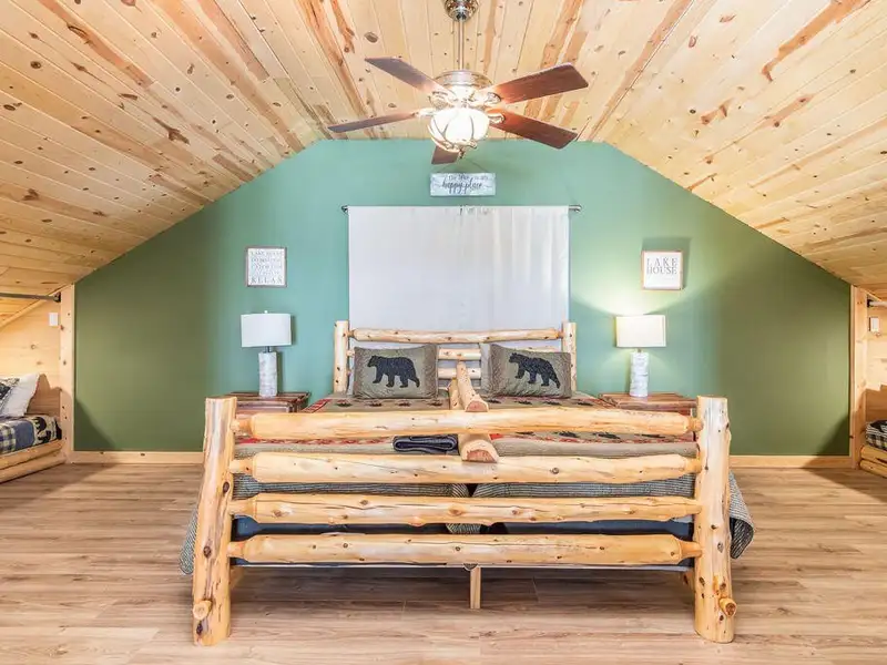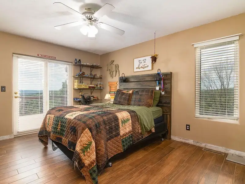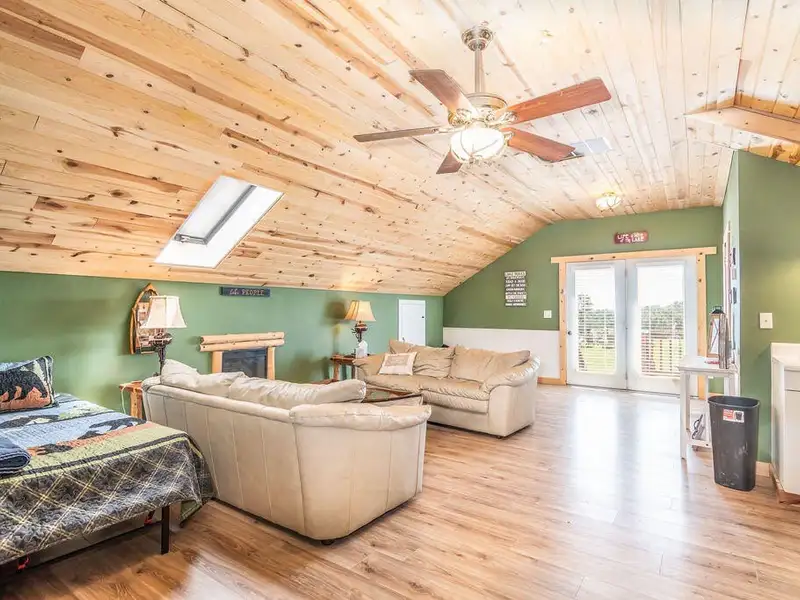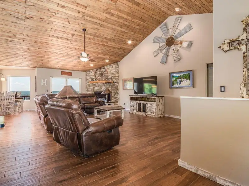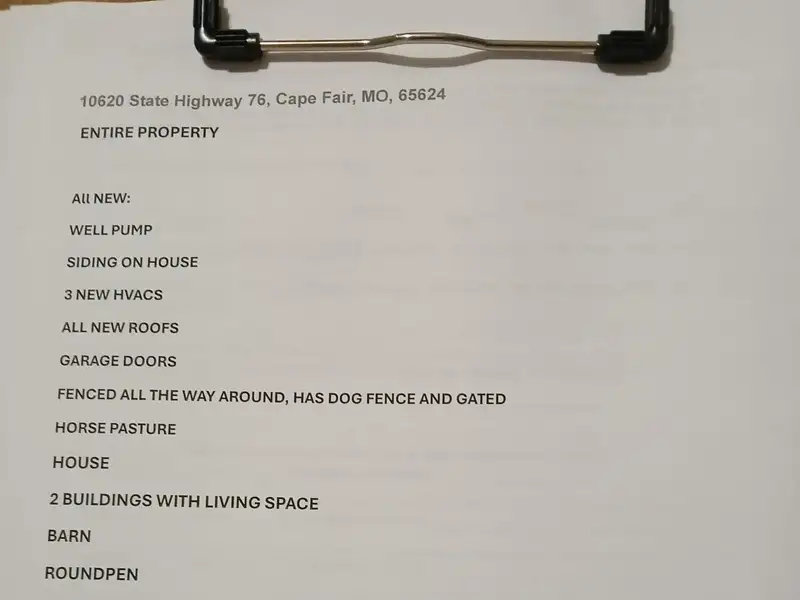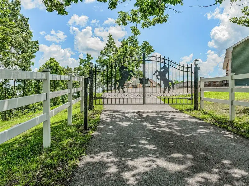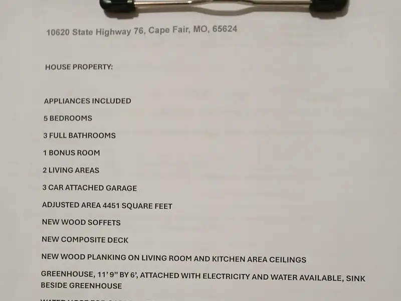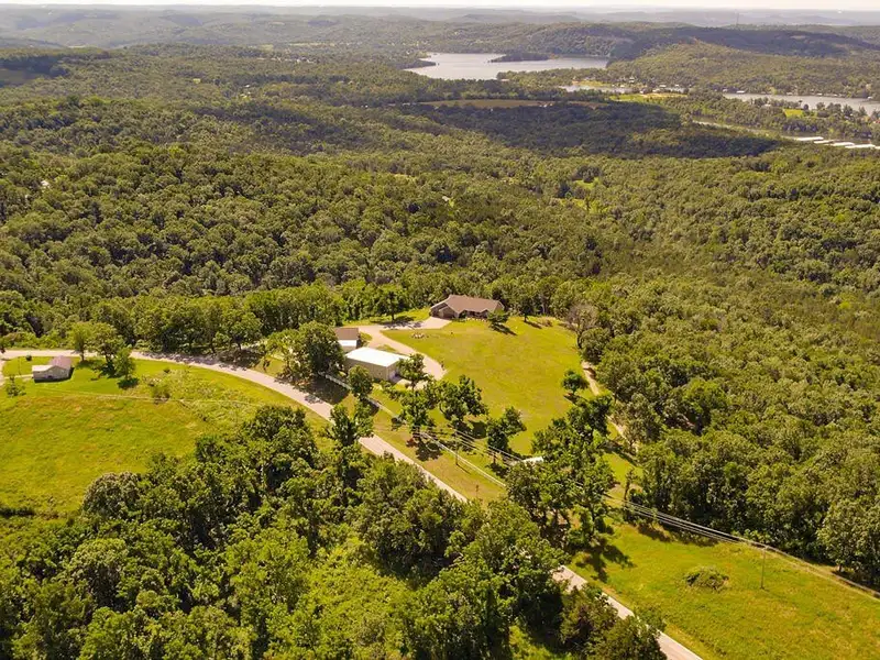 Gorgeous Table Rock View from this beautifully renovated home that is only about 5 minutes to the boat launch! Gated, secluded, but only about 12 minutes from Branson West. The home has a brand-new 11'9' by 6' green house with a sink, 8 4' by 8' raised garden beds, 18'' deep, and fruit trees. peach, apple, pear, nectarines... The lower level has 2 bedrooms, a bonus room, a storage cellar, a large kitchenette, and extra living space. This home comes with 2 other buildings and a 4-stall horse barn. Read on for their descriptions. The home has a new siding and a new composite deck. where the owners can sit, eat, and enjoy the magnificent view. The home and both buildings all have new roofs and new HVACs as well as beautiful new garage doors! The well pump is new! This unique property has a large event center (about 2537 square feet) with a very well-equipped commercial kitchen, a bandstand, dining area, and game room area as well as a projector and a large screen. A wonderful collection of antiques enhances the atmosphere, and three large garage doors can be opened for open-air activities! The event center does have a bathroom with a shower. This building was used for a car collection by the previous owner and could be converted back to a garage if desired. The other building is a cabin with about 1462 square feet of living space with an attached garage that is about 46' 9'' by 19' 5' with a height of about 14 to 16'. The new garage door is 14' high. There is a 30-amp RV hook-up off of the driveway behind this building. There is a lean to shed attached to the building for mowers, etc. The lower level of the cabin has 1 king size bed, 3 sets of bunkbeds, a washer, dryer, mini fridge, a microwave, and a sink. It includes a recliner sofa, a bathroom with a shower, and 2 paddle fans. The upper level has one king bed that could be 2 twins, 6 twin beds, 2 sofas, an electric fireplace, a medium size fridge, a sink, and a microwave. Please see added info in photos!