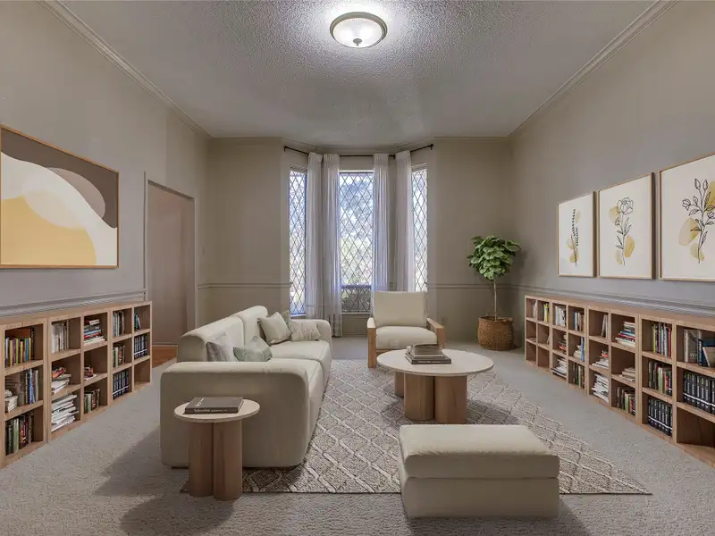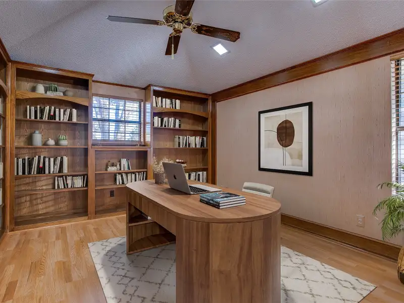 - Built-in shelving in study/library