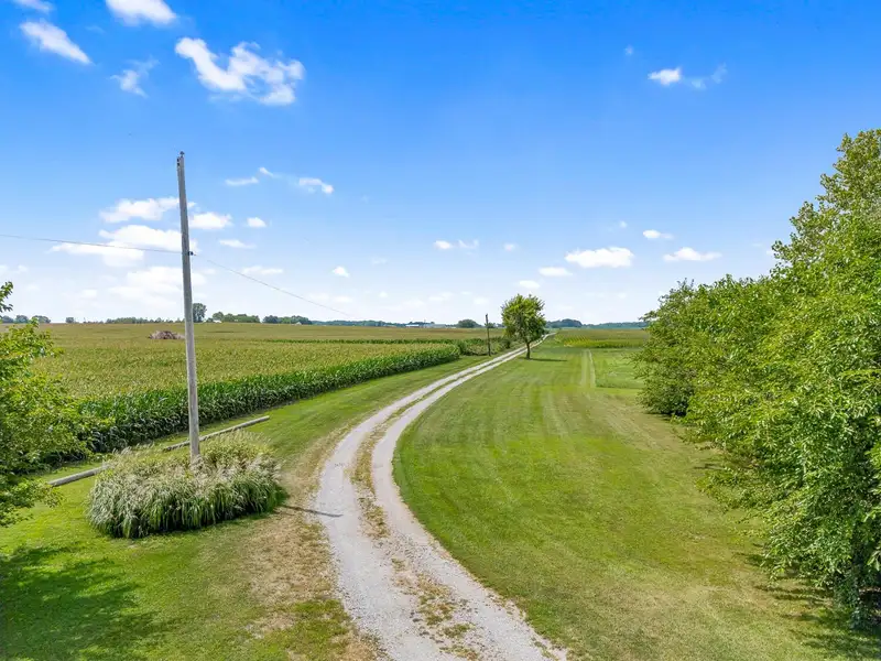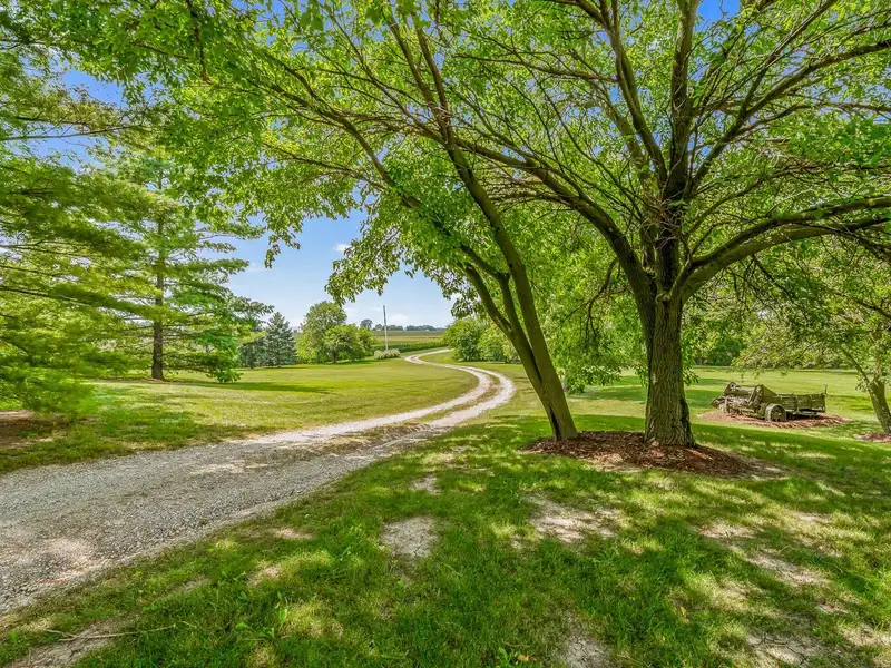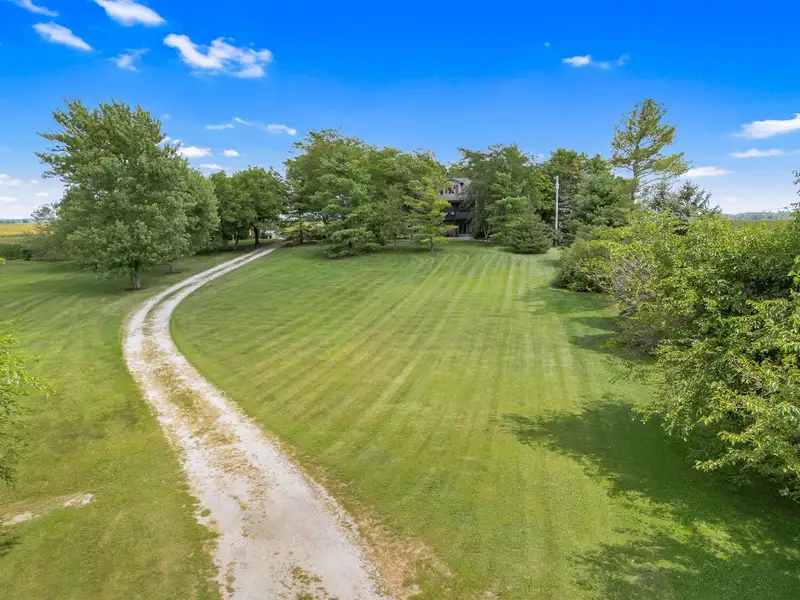 - Private long driveway with mature trees
