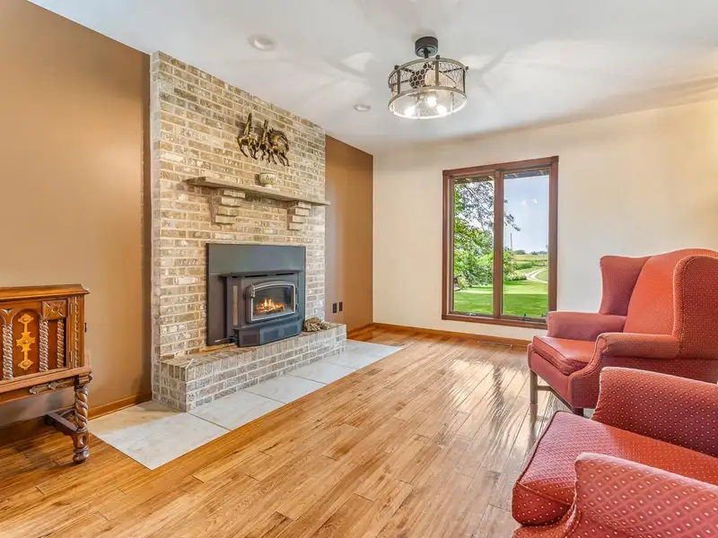 - Hardwood floors with wood-burning fireplace