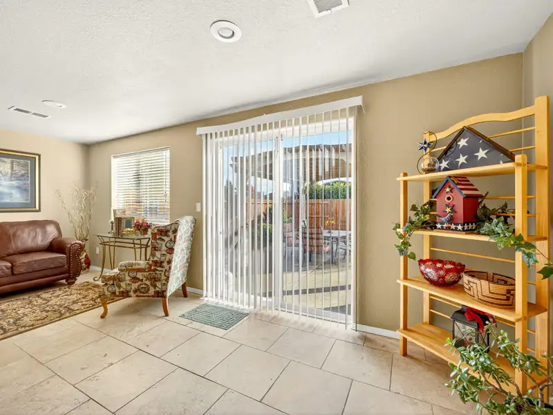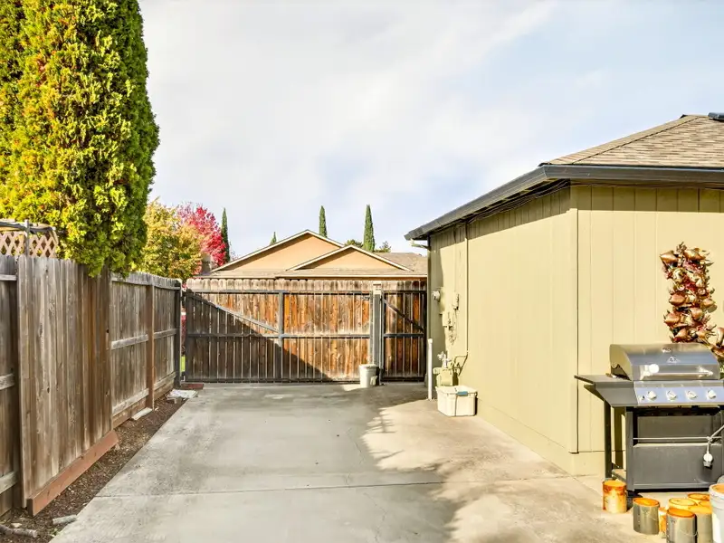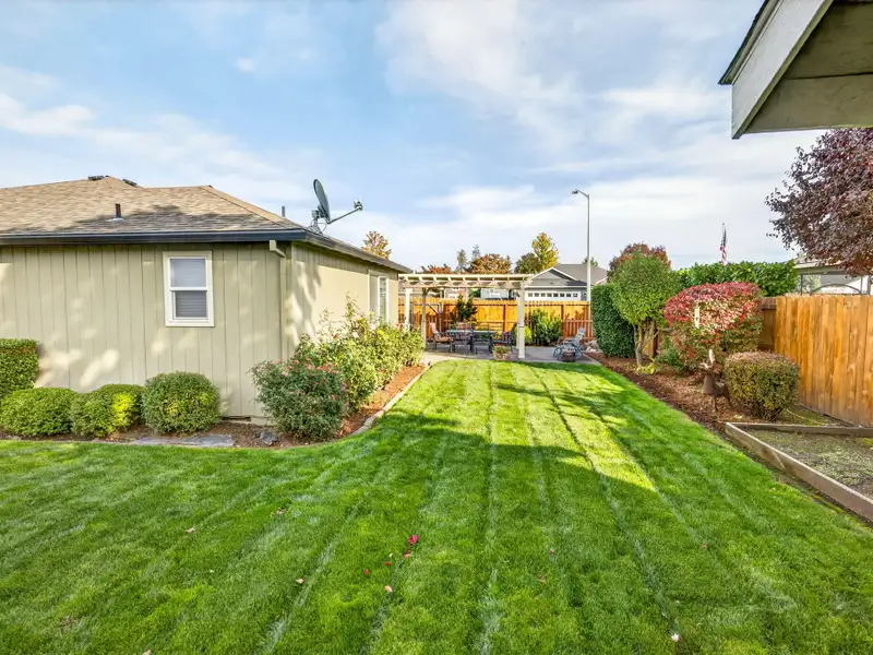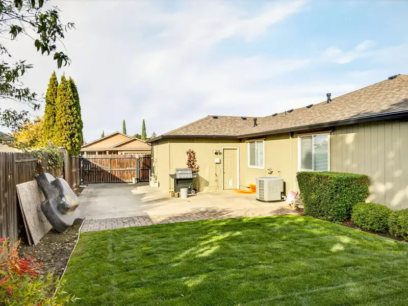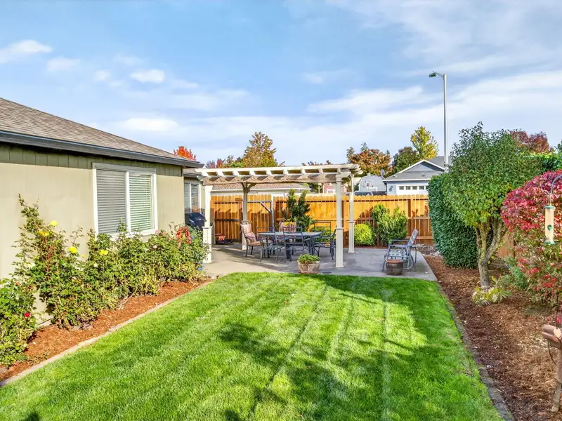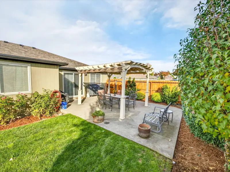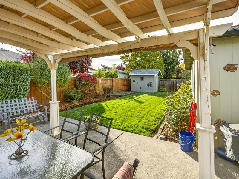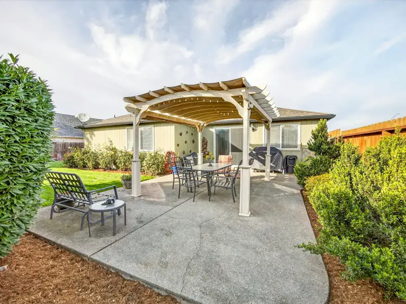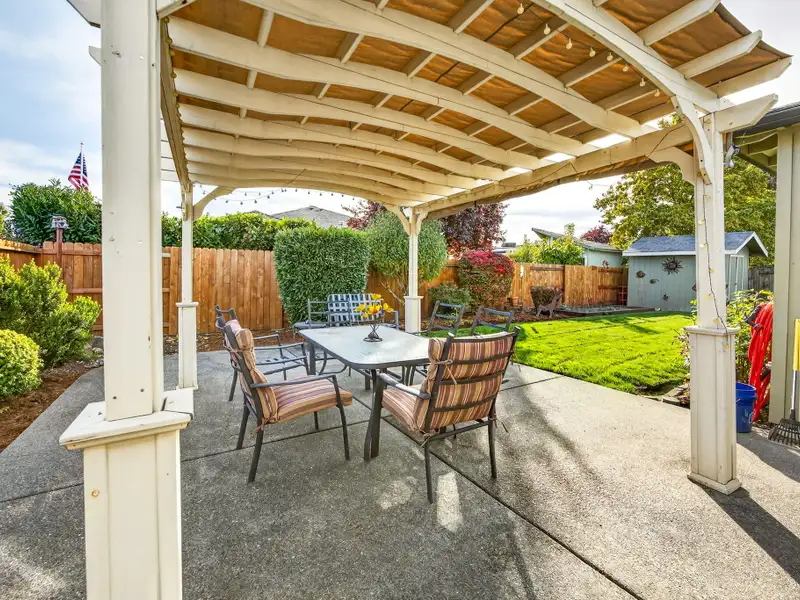 - Backyard patio with shaded pergola