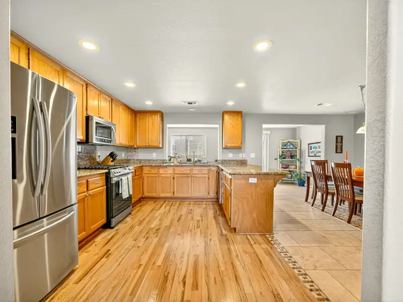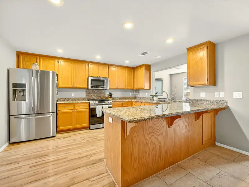 - Open kitchen with granite countertops