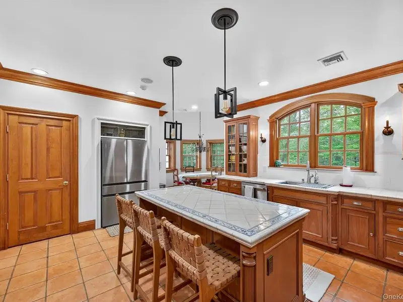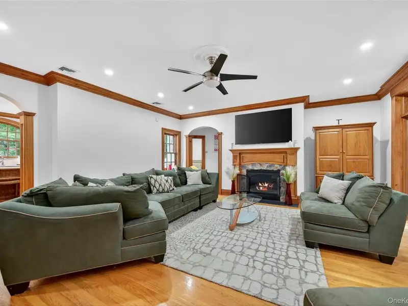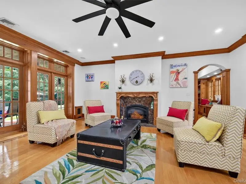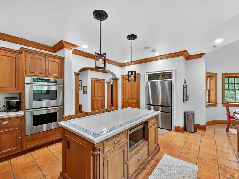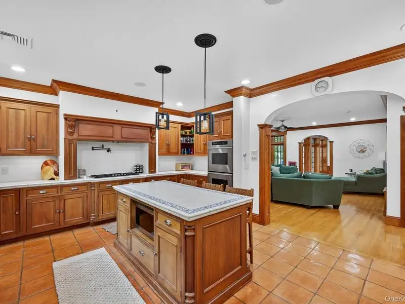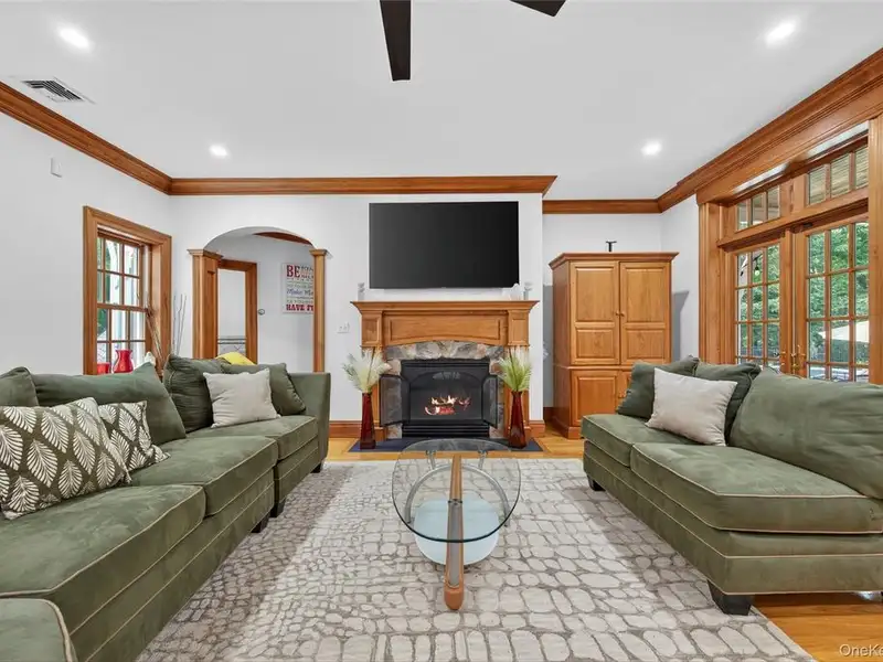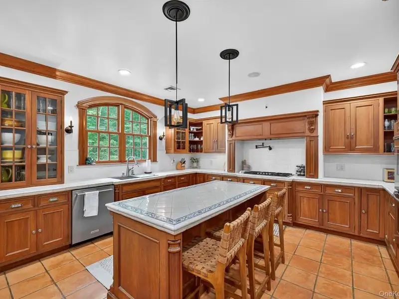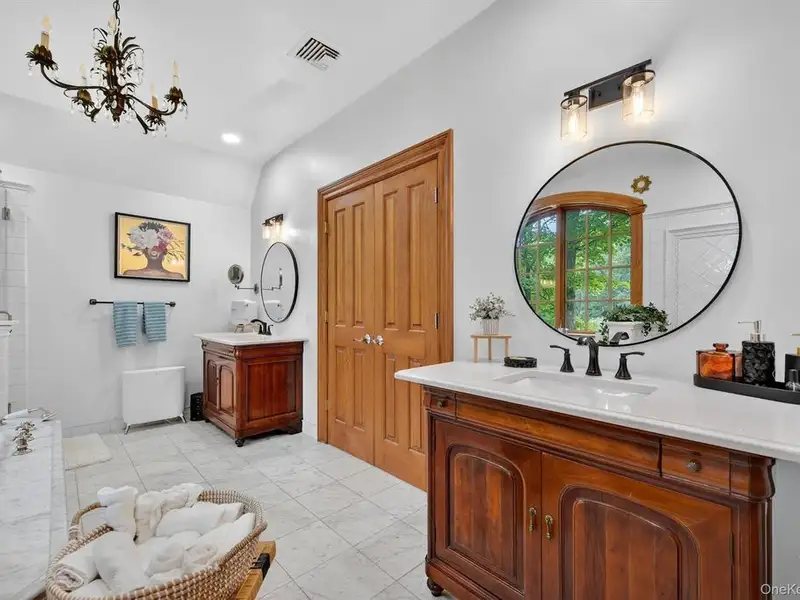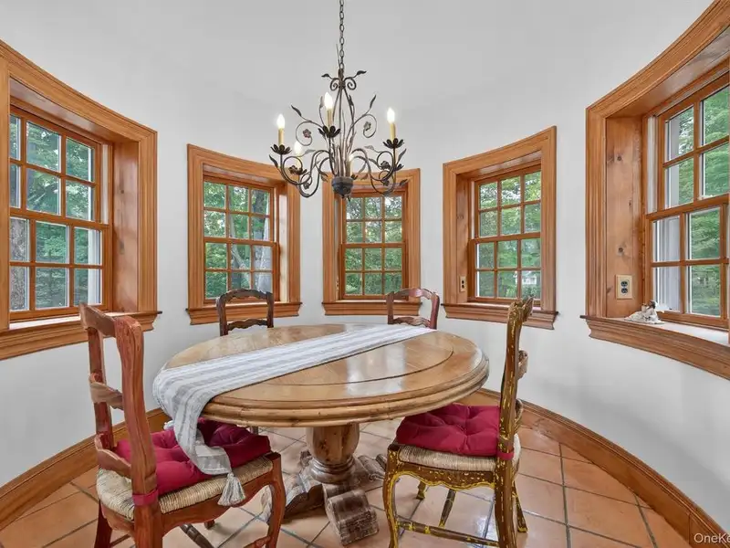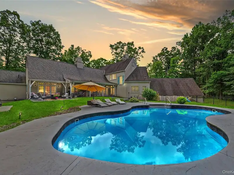 Welcome to "LE CHATEAU des VERTS" ? Lives like a ranch, entertains like a castle. Discover a slice of the French countryside, perfectly perched in the Hudson Valley.Inspired by the rolling hills of Provence and meticulously crafted with timeless elegance, this one-of-a-kind home is known to its neighborhood residents as "The Castle on the Hill." It's more than a house; it's a tranquil retreat for those seeking an escape from the city, without sacrificing style or convenience.Nestled on over an acre of serene, maturely landscaped grounds, Le Château des Verts offers a true sanctuary just 30 miles north of Manhattan. The design immediately captivates you as you arrive, with a grand two-story turret and custom arched windows accented by slate-blue shutters?a nod to the classic beauty of French architecture.Step through the double front doors into an inviting foyer. The radiant floors guide you through the sprawling first-floor living area, where natural light pours in from every window, creating a warm, airy atmosphere. To the left, the formal dining room is perfectly positioned for memorable gatherings, with east-facing windows that capture the beauty of the Hudson Valley sunrise.The heart of the home is the French-Country eat-in-kitchen. Here, custom cabinetry and woodwork, along with pull-out spice drawers on either side of the five-burner stove, blend practicality with elegance. The turret space provides the ideal nook for a circular breakfast table, while the center island offers additional seating and prep space.For unwinding or entertaining, the home features two elegant living rooms, each with its own fireplace. Walls of French glass doors illuminate these spaces, offering seamless views and access to your backyard oasis, complete with a heated, in-ground saltwater pool. This is where you'll find yourself on summer afternoons, soaking in the sun and enjoying a peaceful moment.The North Wing of the home, or the "Owner's Wing," is a private escape. A nearby second bedroom, ideal for a nursery or home office, features its own set of French glass doors leading to the garden. The Owner's suite is a haven of relaxation, with high ceilings and another set of French doors that amplify the natural light. It leads to an ensuite bathroom with dual vanities, a luxurious jacuzzi tub, and a custom shower. A walk-in closet with built-ins completes this wing.Continuing to the west wing of the home, a half-bathroom, laundry room, and a spacious bonus room offer flexibility?perfect for a billiards room, library, or secluded living area.Upstairs, two generous guest bedrooms share a full bathroom, ensuring comfort and privacy for visitors. An unfinished space also leaves room for additional quarters. The walkout lower level provides a versatile living space with a full bath. A large room, currently used as a walk-in closet, has endless potential for a jaw-dropping hobby space?from a private wine cellar to a state-of-the-art recreation room with a golf simulator. A full gym and an attached three-car garage complete this incredible home.This is more than a property; it's a lifestyle you've been dreaming of.