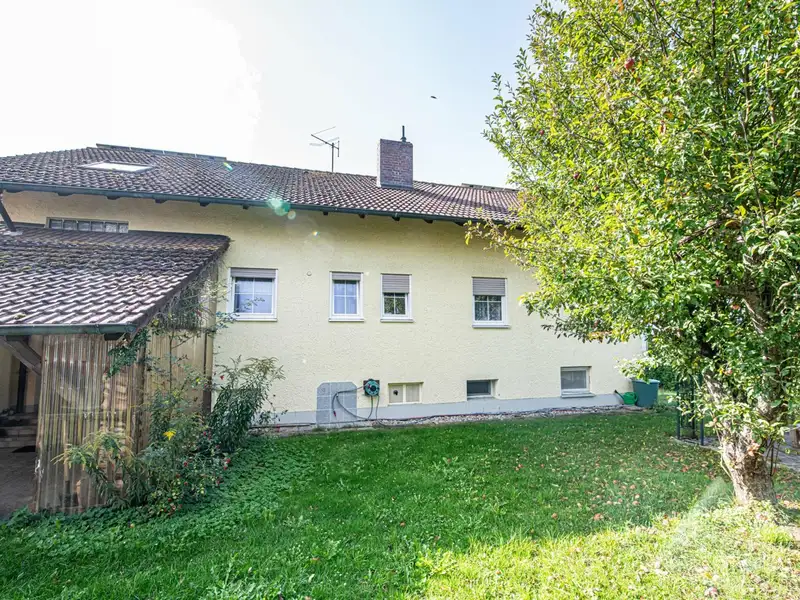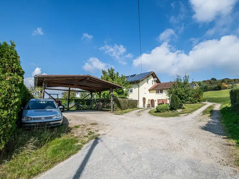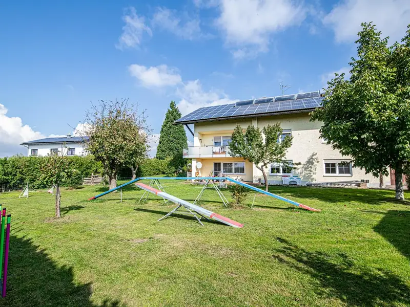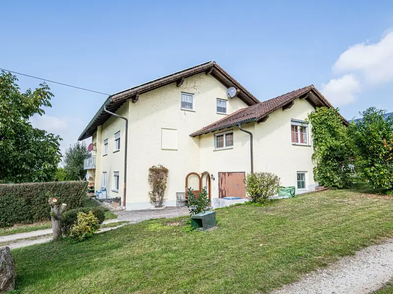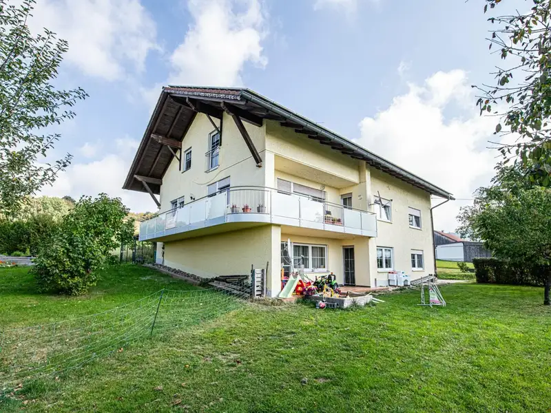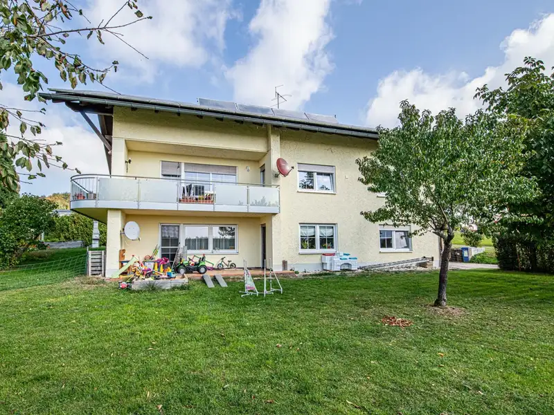 This spacious apartment building, first occupied in 1983, offers you a living space of around 244 m² spread over three separate residential units. The property is situated on a spacious plot of approx. 4,259 m², of which the house plot comprises approx. 1,900 m². The adjoining approx. 2,360 m² are currently zoned as agricultural land; however, it is quite conceivable that this area could be zoned as building land in the next few years.