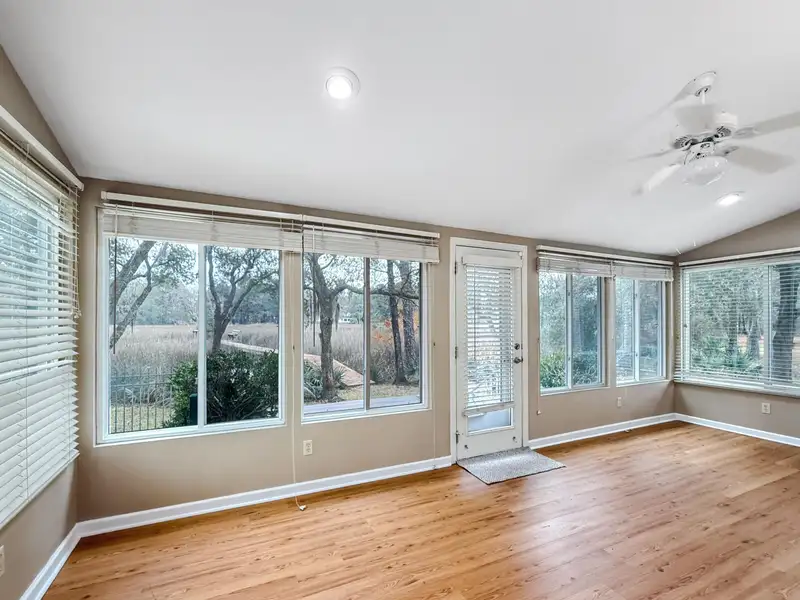 - Sunroom with three-sided windows