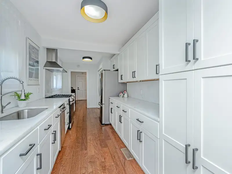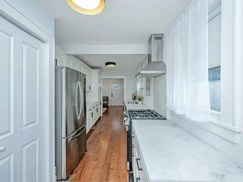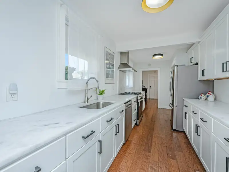 - Marble countertops in kitchen and baths