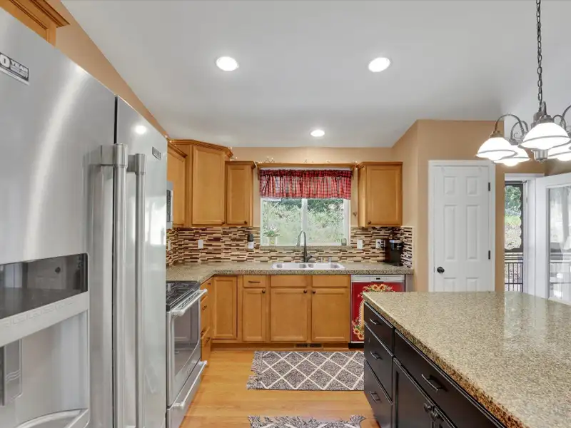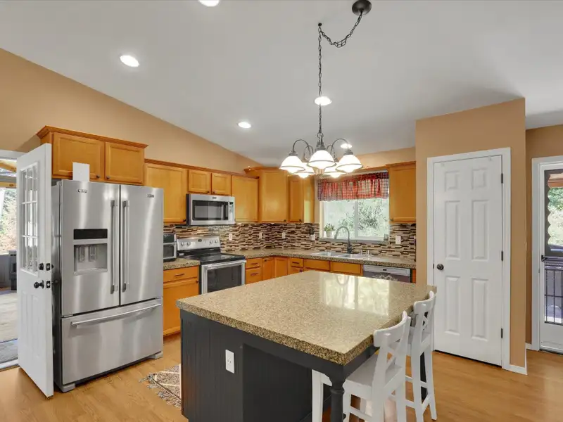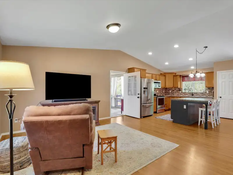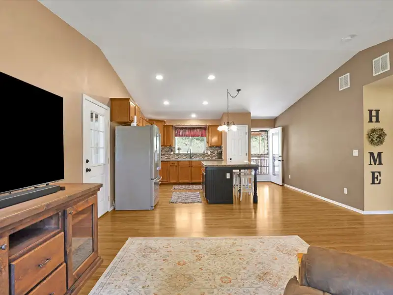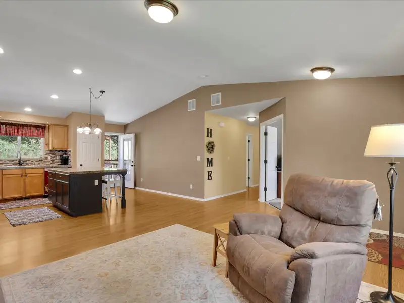 - Open-concept floor plan with vaulted ceilings