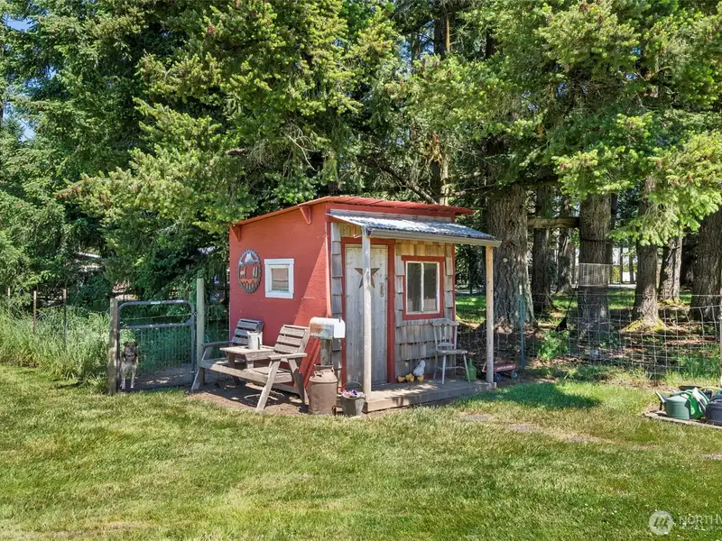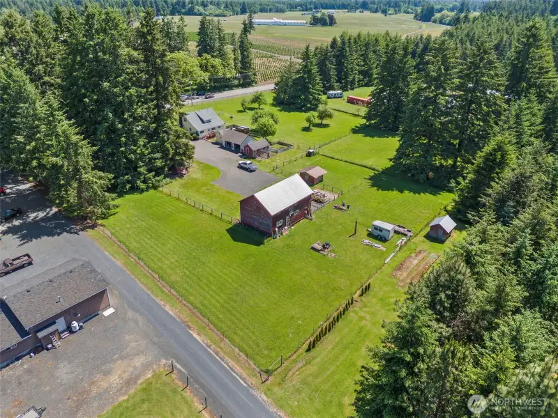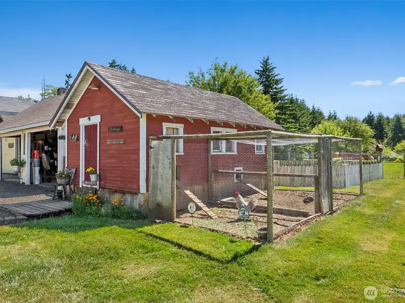 Animal lovers dream! This mini farm has all the amenities needed to raise livestock or poultry. Must see chicken coop is ready to deliver eggs. The fenced in park area has an abundance of shade for pets or littles. Property has all the cross fencing and gates to rotate your critters as needed. The grass is lush and well maintained. Plenty of well established fruit trees. Two story barn has great potential for so many things, workshop, barn, feed room, quiet place or whatever you dream up. The home has been upgraded to its charming state and will make someone a wonderful dwelling. Equine or bovine would love this beautiful property. Easy access to freeway and a short drive to town, shopping. Home is Between Seattle and Portland airports.