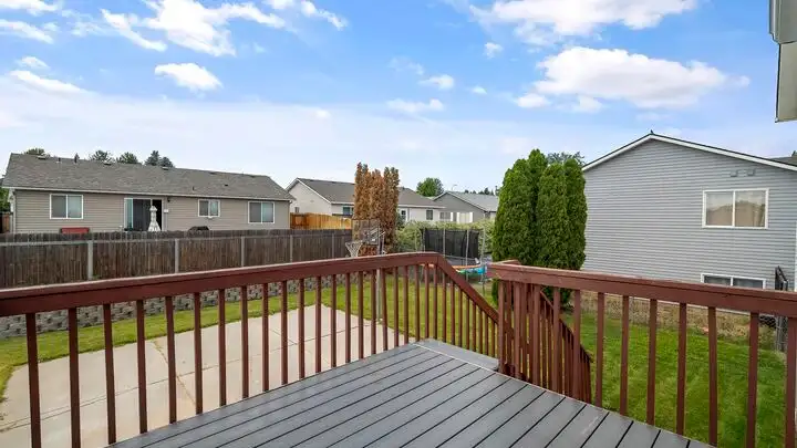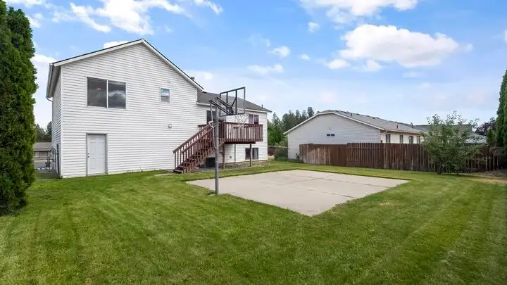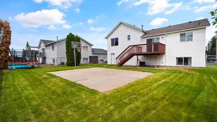 - Fully fenced backyard with basketball hoop