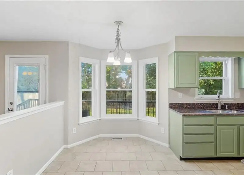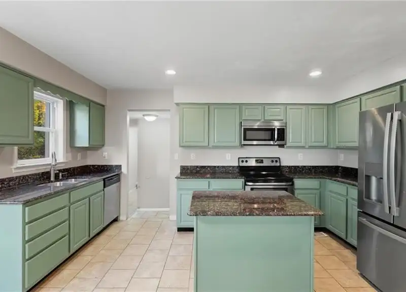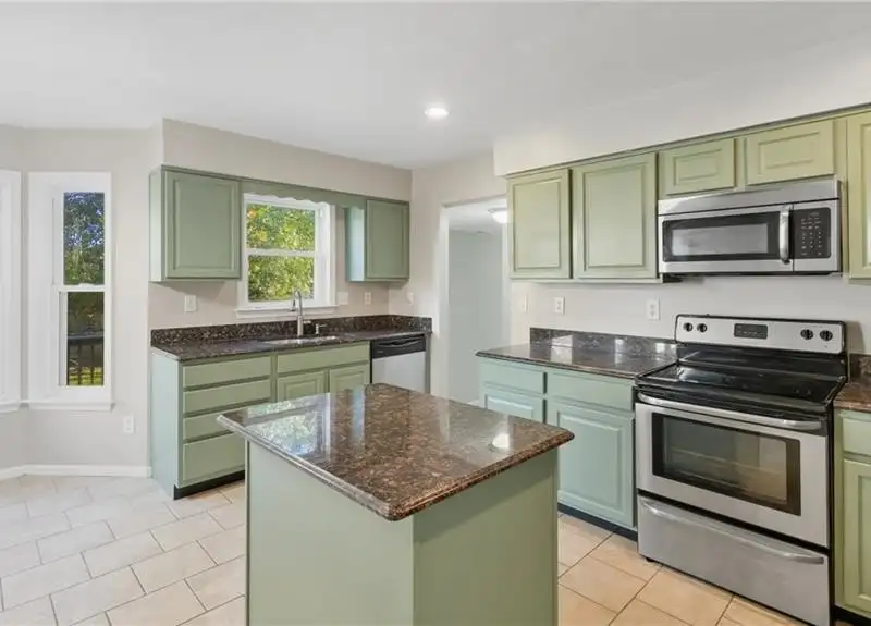 - Granite countertops in kitchen