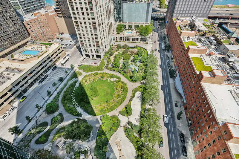 - Floor-to-ceiling windows with park views