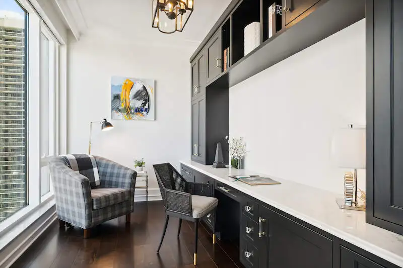 - Floor-to-ceiling windows with skyline views