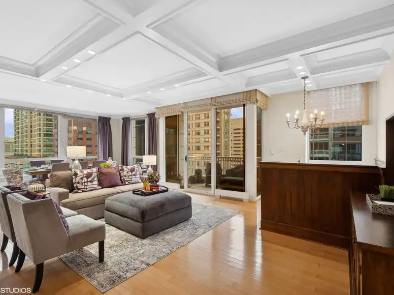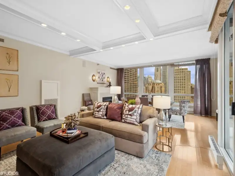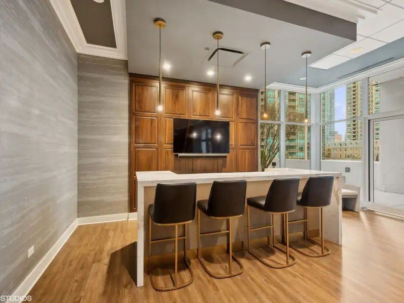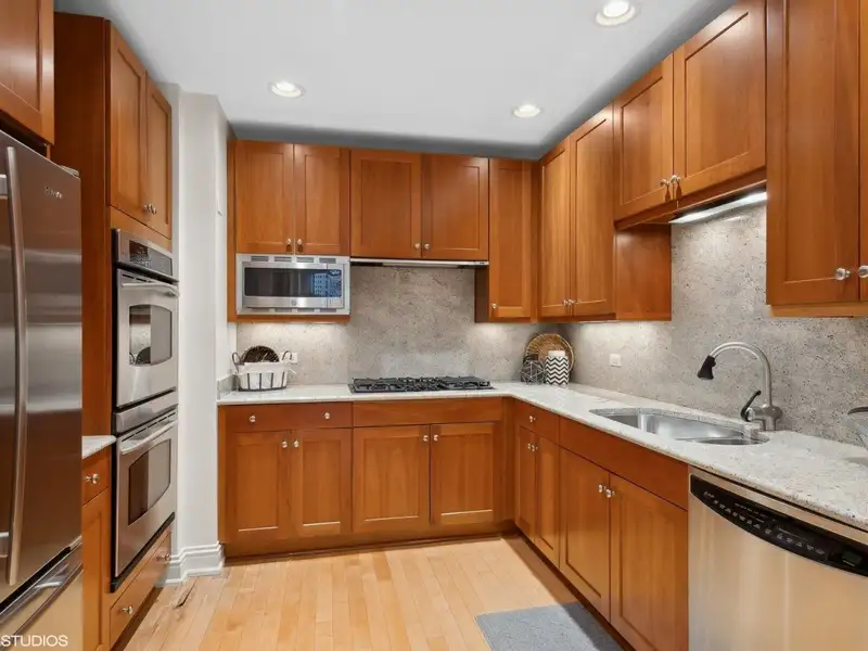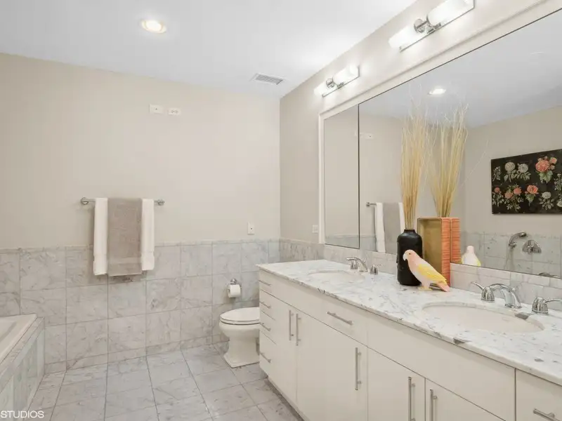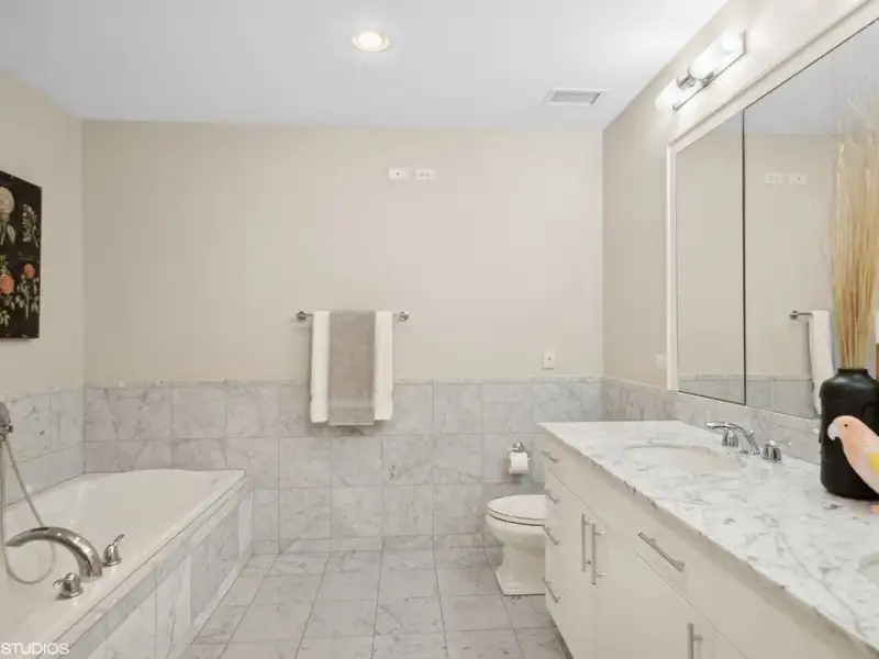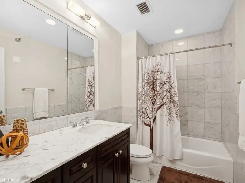 This stunning 3-bedroom, 2.5-bathroom condo in the highly sought-after 55 E Erie offers an exceptional blend of luxury, comfort, and breathtaking city views. Located on the 21st floor, the open layout features floor-to-ceiling windows that flood the space with natural light. The gourmet kitchen boasts high-end stainless steel appliances and custom cabinetry, making it perfect for entertaining. The expansive primary suite includes a walk-in closet and a spa-like en-suite bathroom with a soaking tub, dual vanity, and a separate glass-enclosed shower. Two additional generously sized bedrooms provide ample space for guests or a home office. Enjoy the convenience of in-unit laundry, hardwood floors, and a private balcony. Residents of 55 E Erie benefit from world-class amenities, including a 24-hour doorman, fitness center, indoor pool, and sundeck. Situated in the heart of River North, this home is just steps from fine dining, shopping, and public transportation, making it the perfect urban retreat.