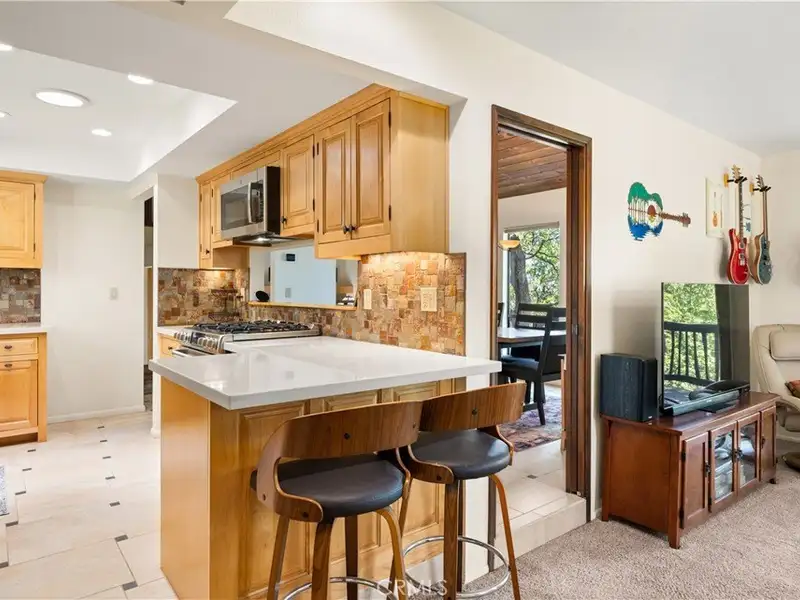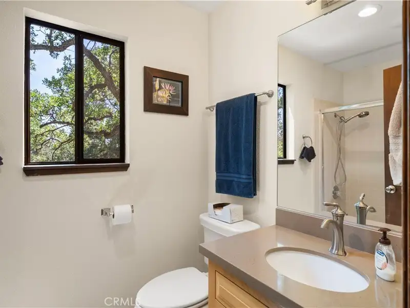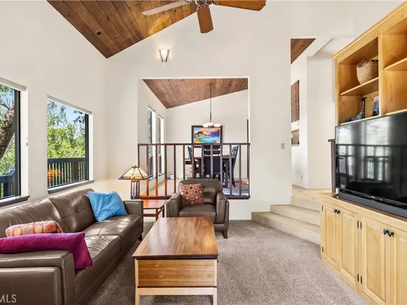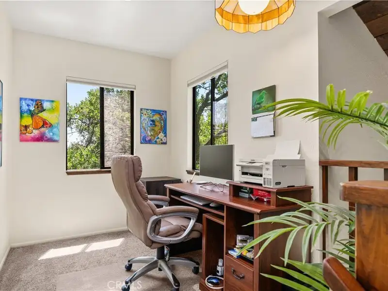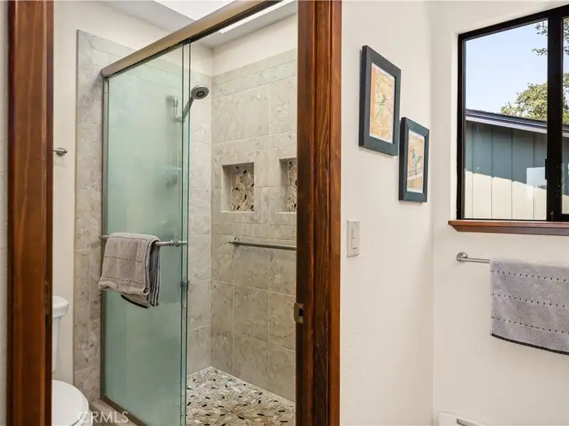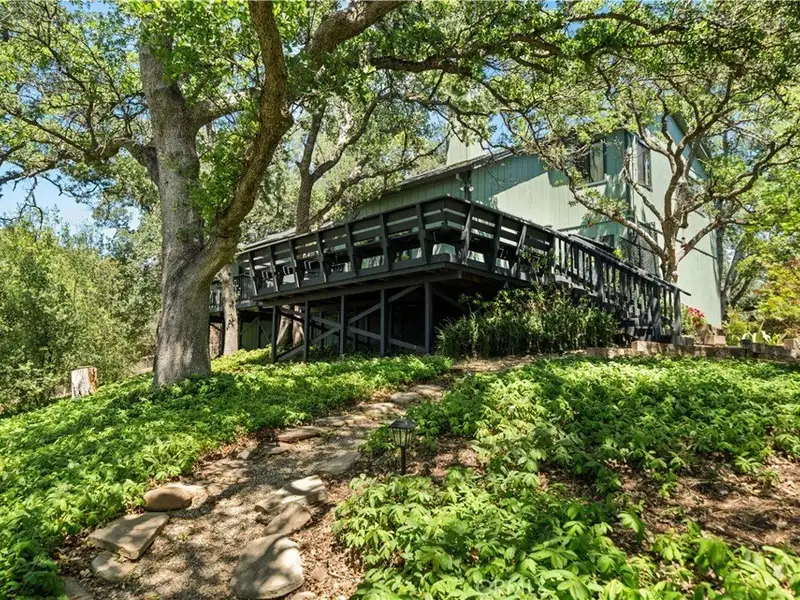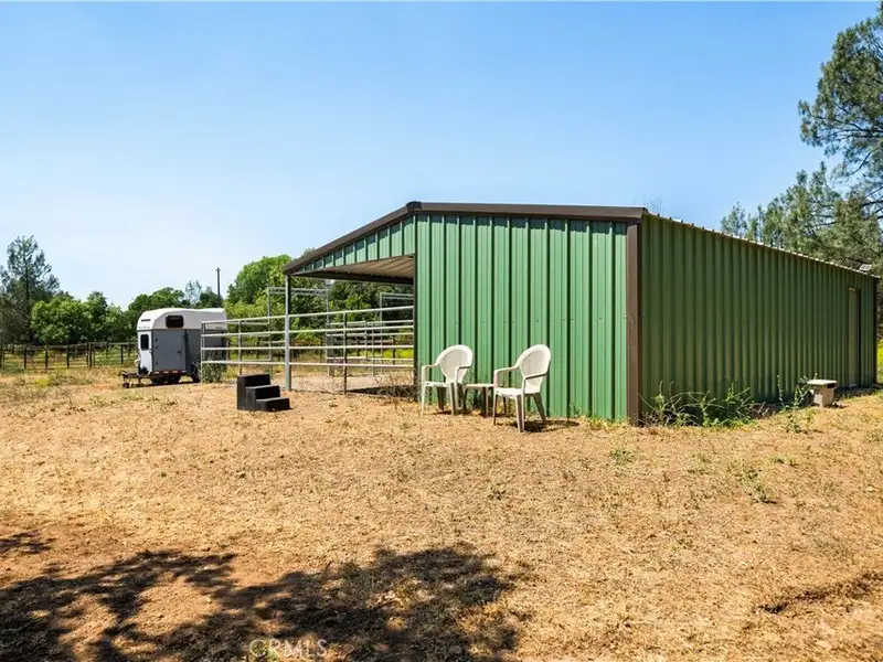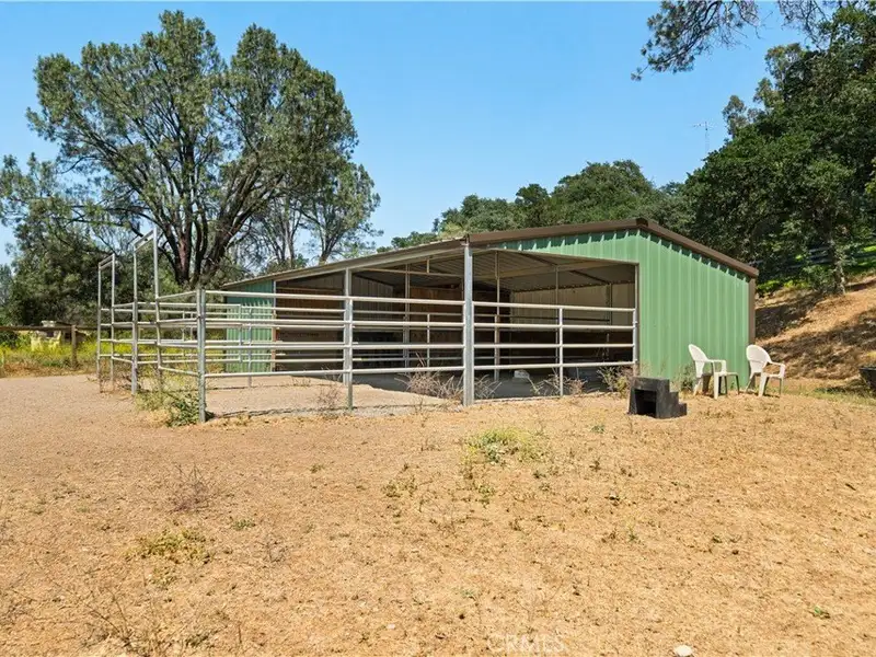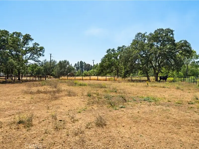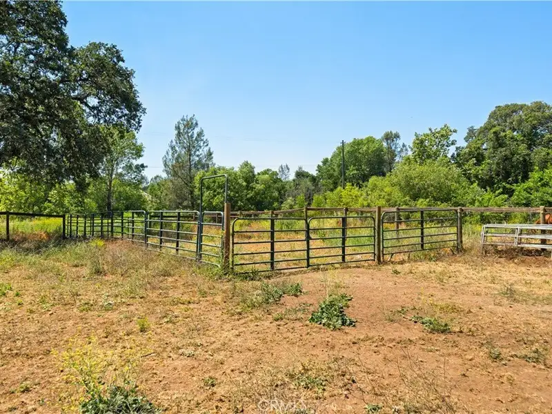 Let your North Chico house hunt stop here! Sitting on over 3 acres, this custom built home is in a private setting among the oak trees set far down a private drive with lots of amazing features. You'll immediately be drawn to the warm, high, tongue and groove ceilings that run throughout the main living and dining area. You will notice all of the windows capture the natural beauty of the terrain. The living room features large windows looking out to the back yard allowing for plenty of natural light, high ceilings, a cozy fireplace, and a custom built-in set of shelves. In the kitchen the same custom cabinetry compliments the bright white quartz counters, tile floors, and stainless steel appliances. Off the kitchen is an oversized den with a wet bar, stacked laundry, and garage access. The two guest bedrooms with a shared bathroom are situated downstairs. Up the stairs is a landing with a home office area and the master suite just beside. The master suite is very spacious and is truly a retreat with views of the property out every window! There is a walk-in closet, ensuite bathroom with tile shower and large vanity with lots of counter space. Outside is where the best features of the home truly shine, including the expansive deck with hot tub! This is the perfect space for entertaining, sipping morning coffee, or simply sitting and listening to the birds chirp. On the rear, lower part of the property, there is a new two stall metal horse barn with pen while the entire property is cross fenced making this property perfect for any other livestock or furry friends. Other notable features of the property include a newer tankless hot water heater, new exterior paint, roof under 10 years old, gutter guards to reduce annual leaf maintenance, mature landscaping with automatic sprinklers, a storage shed, and a paved driveway. This property is truly unmatched with the one-of-kind design and privacy just waiting for you to call it home!