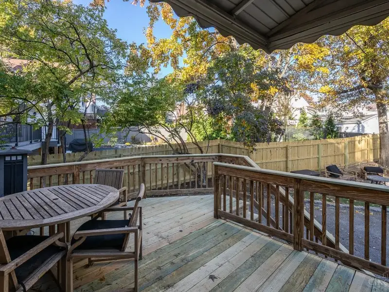 - Private fenced backyard with deck