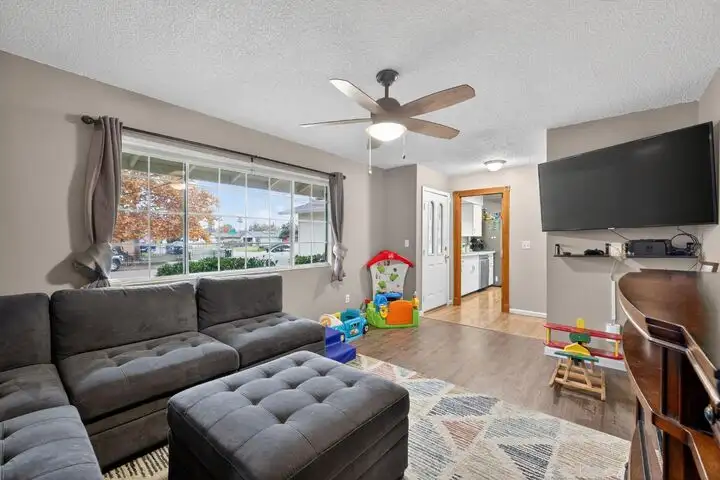 - Large picture window provides natural light