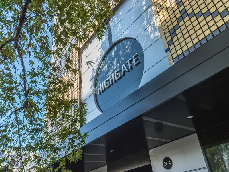 * Modern 1-bedroom Highgate apartment delivering premium inner-city living in a quality luxury development
