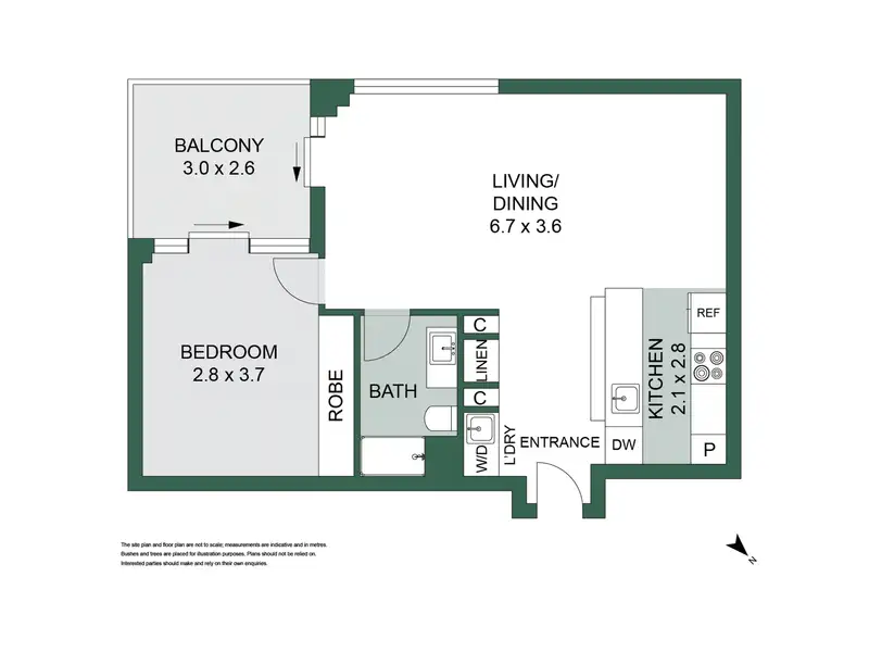 * Light-filled open-plan living zone flowing to a covered balcony with access from both the lounge and bedroom