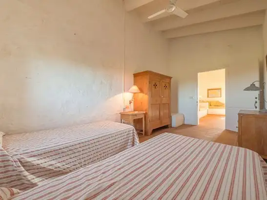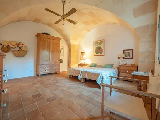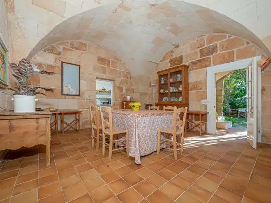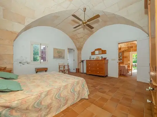 Rustic finca with unobstructed views in Ciutadella de Menorca.~~This rustic finca immersed in the natural enclave of Ciutadella, is the home where you will improve your quality of life from the first day. With a plot of 77.000m2, this property will allow you to have great privacy and be in greater contact with nature. ~~This property has the following general characteristics:~~• Ciutadella de Menorca~• 200m2 usable area~• 5 double bedrooms~• 4 bathrooms~• 77.000m2 of land~~This traditional rustic finca with its characteristic stone façade is located in Ciutadella de Menorca and has 200 m2 of usable interior space. Both its exterior and interior, with high ceilings with exposed beams and open spaces, evoke the Menorcan tradition.~~The 200 m2 of the property, have been distributed in 2 heights. This will allow you to enjoy greater privacy and intimacy when you have guests, since the bedrooms are located almost entirely on the upper floor. Upon entering the house, a spacious entrance hall will allow you to leave your belongings and move more comfortably.~~As you advance you will reach the elegant living-dining room with direct access to the garden. A space where you can meet with your friends and family, but also allow you to have your moments of relaxation. The kitchen, which is independent and you will find it equipped, has a large storage capacity and amplitude so you will not have problems with space when cooking. On this first floor you will also find a double bedroom with 1 bathroom.~~Through the main stairs, which have a safety railing, you will access the second floor. Place where you will find 4 double bedrooms, 1 of them with bathroom en suite. The fact that the room is located on the top floor will guarantee you greater privacy and intimacy. ~~Its outdoor spaces, which you can access through numerous exits from inside the property, will provide you with outdoor areas where you can enjoy and relax. A functional and elegant garden ideal to disconnect from domestic activities and spend pleasant moments. ~~If you want to know more information about this rustic property located in Ciutadella de Menorca, call 971945453 and ask us or fill in the contact form.