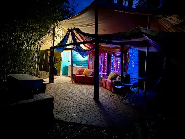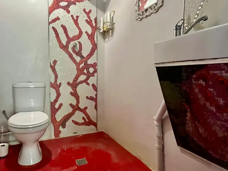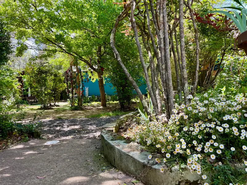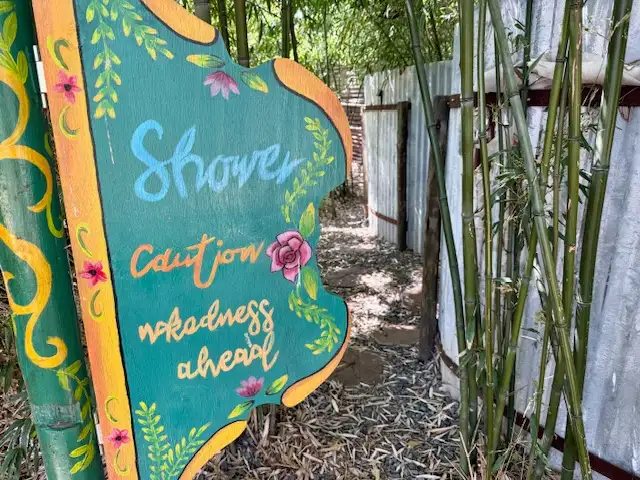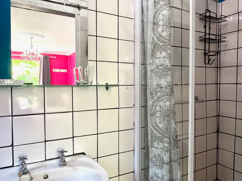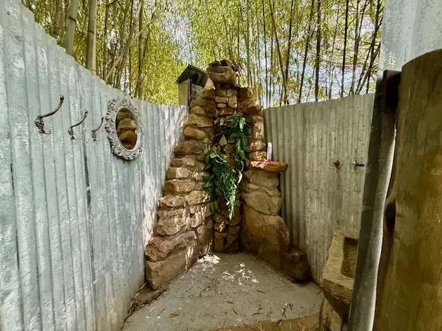 - Outdoor shower and toilet in garden