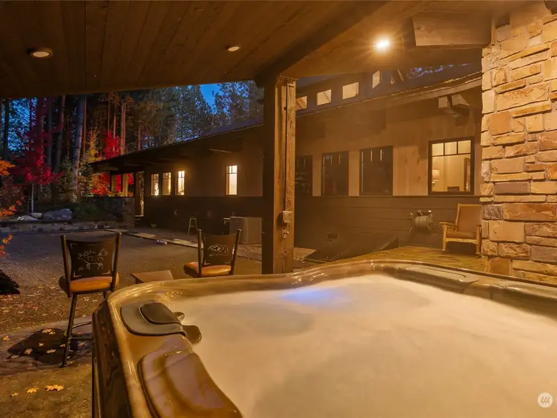 - Covered hot tub with lush gardens