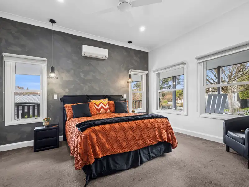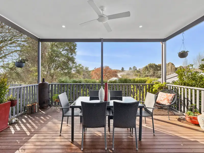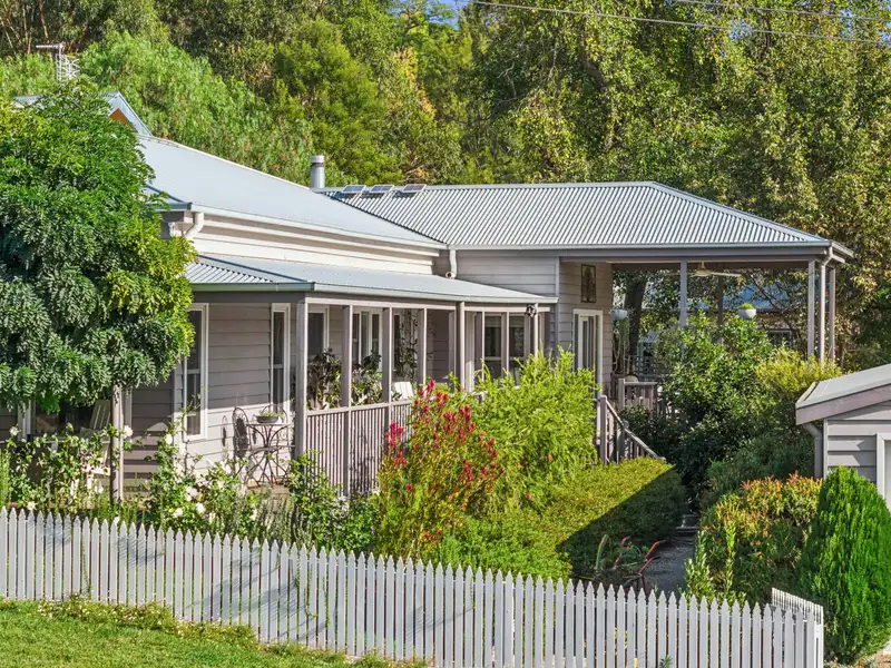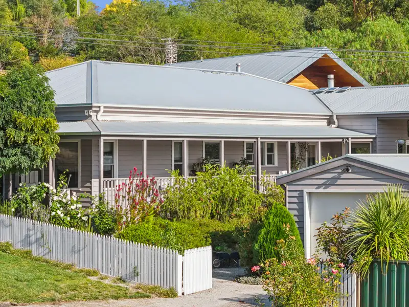 Positioned in an elevated setting just 450 metres from the historic town centre of Clunes. This beautifully appointed four-bedroom, two-bathroom residence combines timeless elegance with modern convenience. Framed by a charming white picket fence, the home sits within an established garden that offers both privacy and a picturesque welcome.