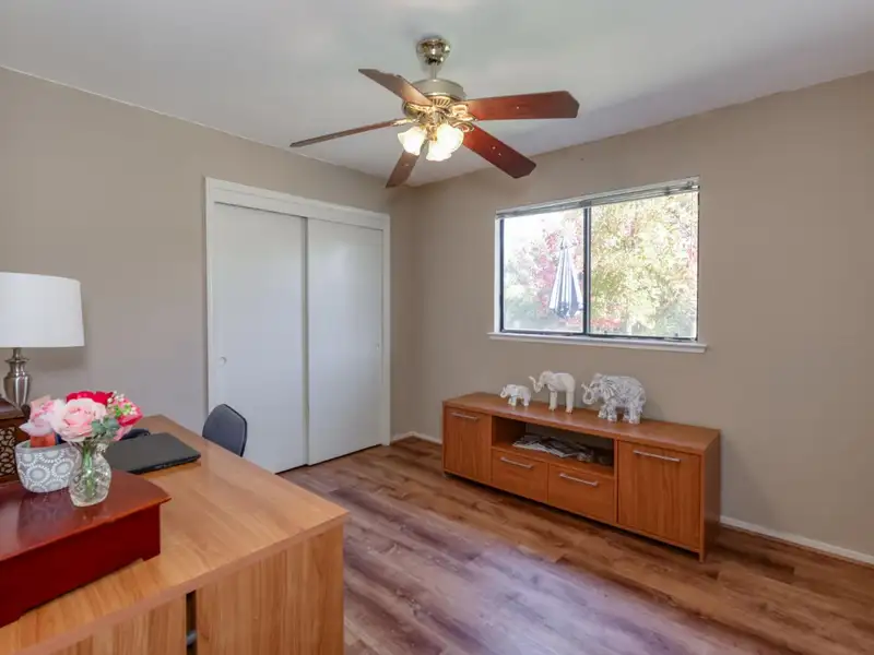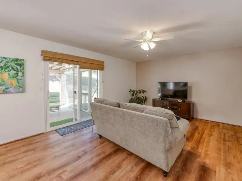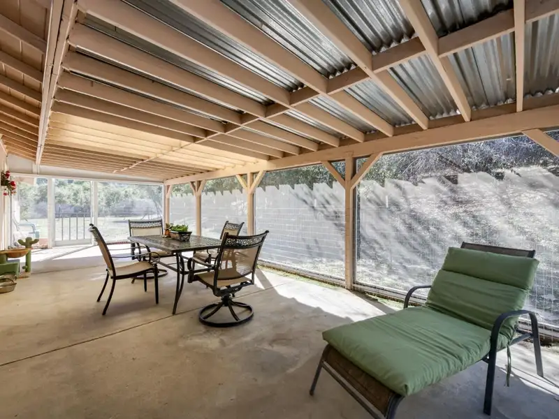 - Fenced backyard with enclosed patio