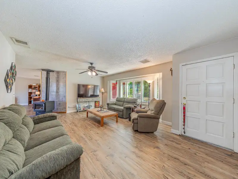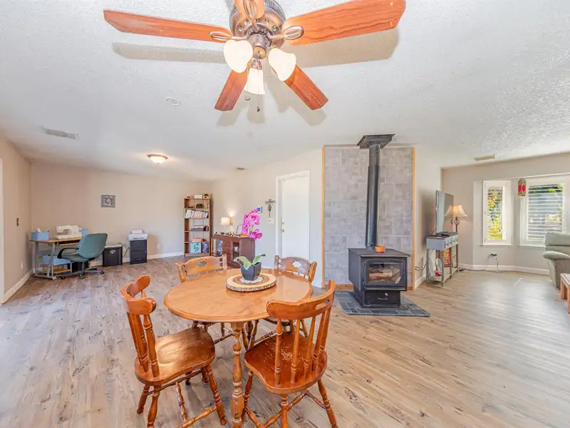 - 1.5-acre lot with fenced pet area and garden