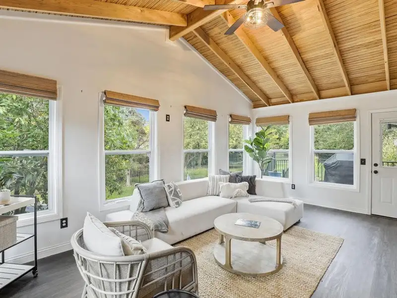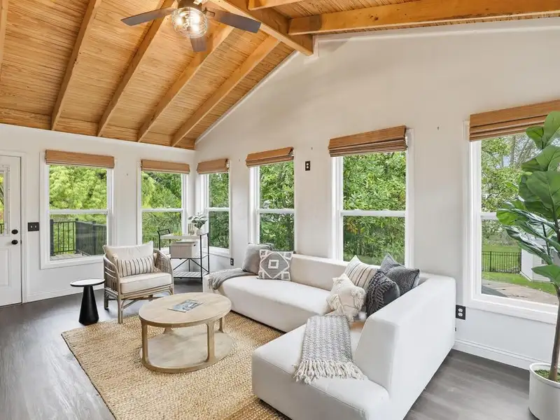 - Four-season room with vaulted cedar ceiling