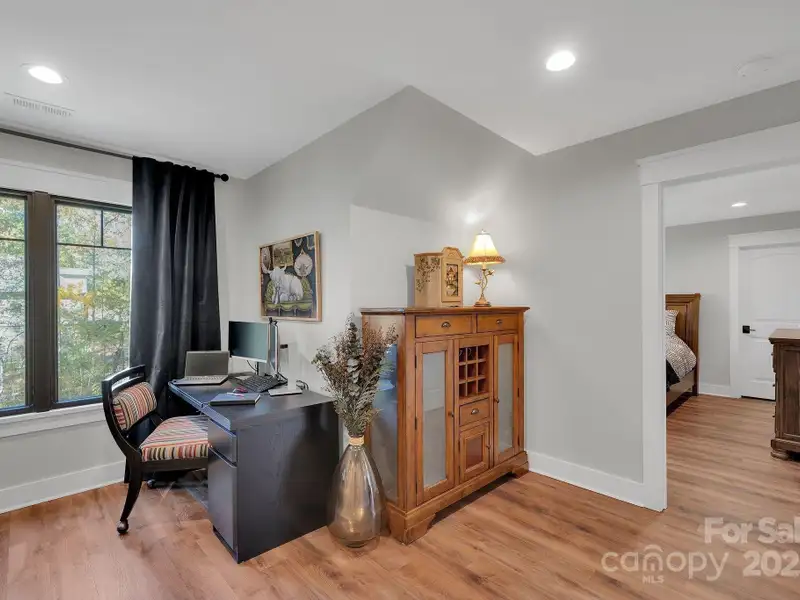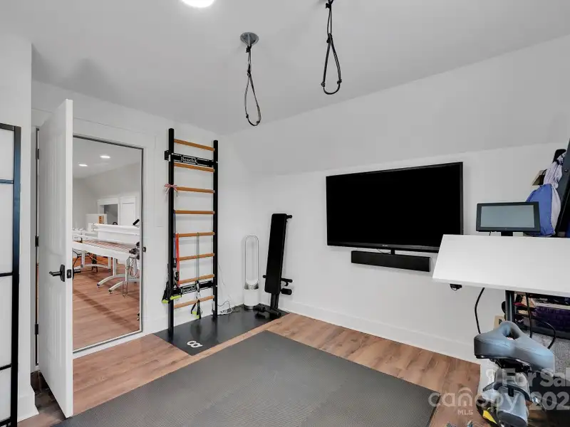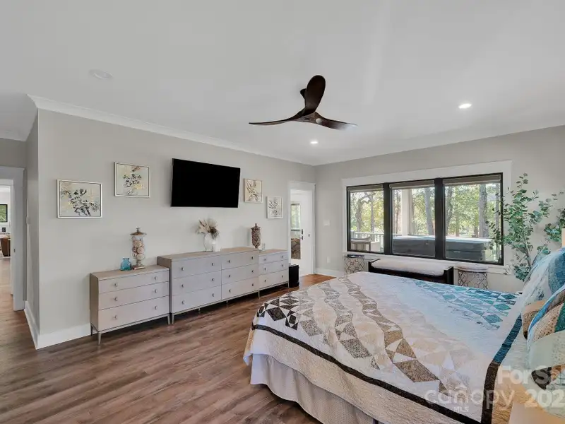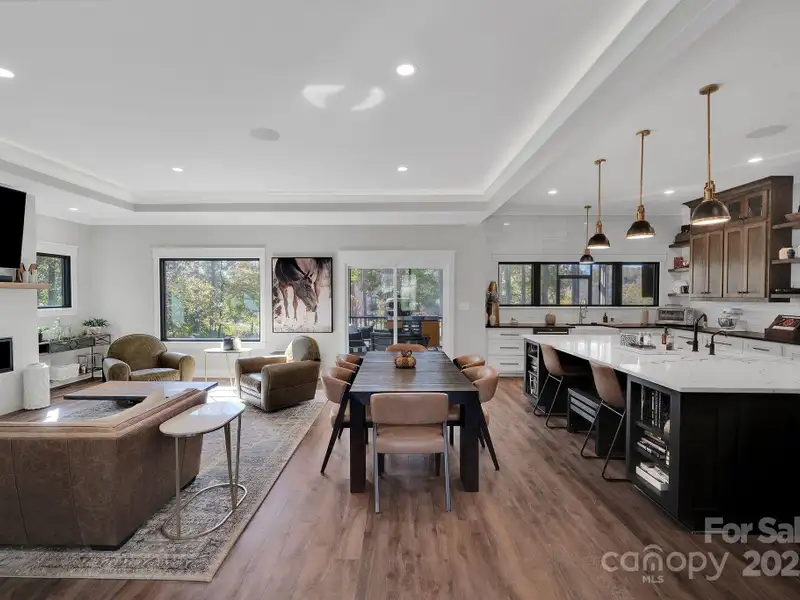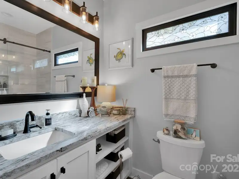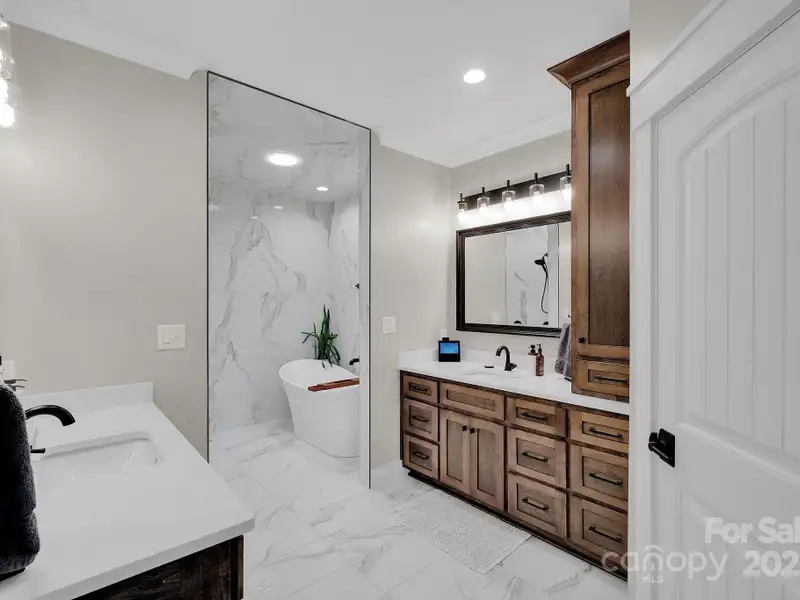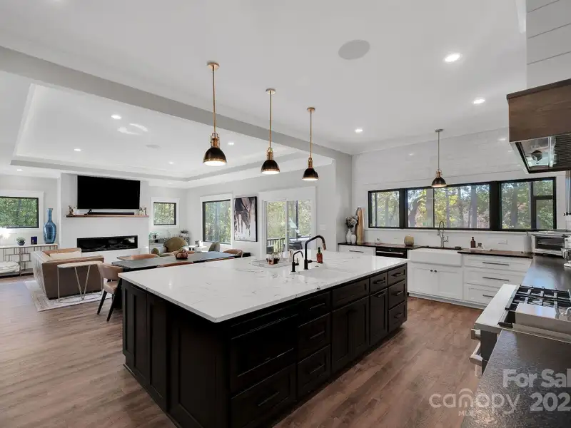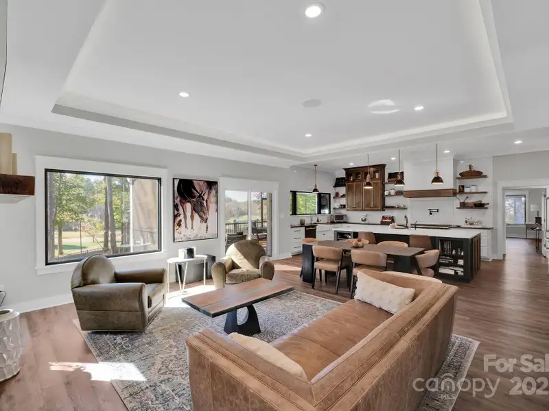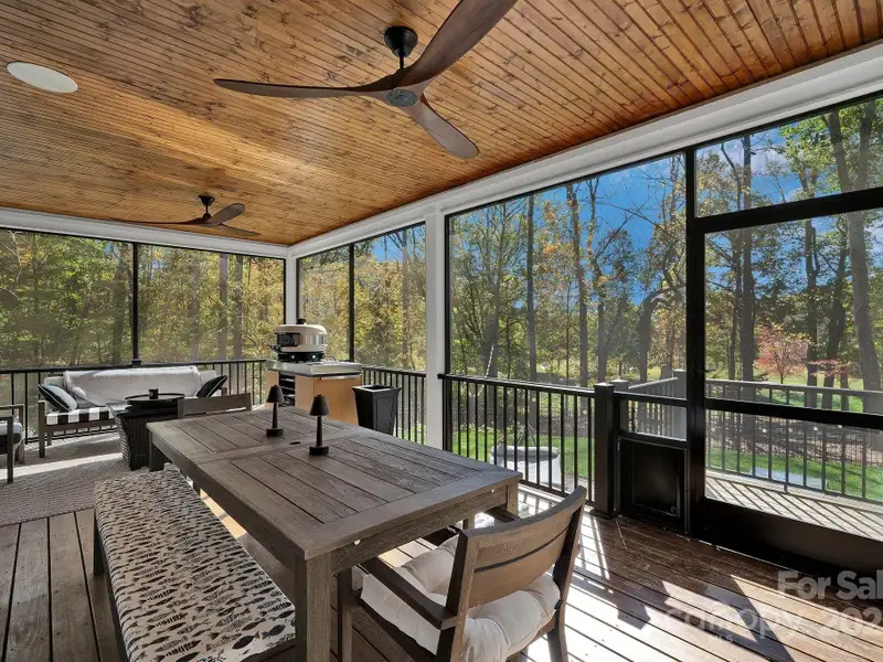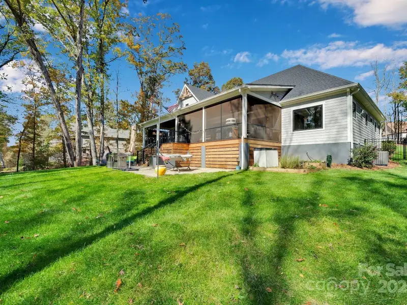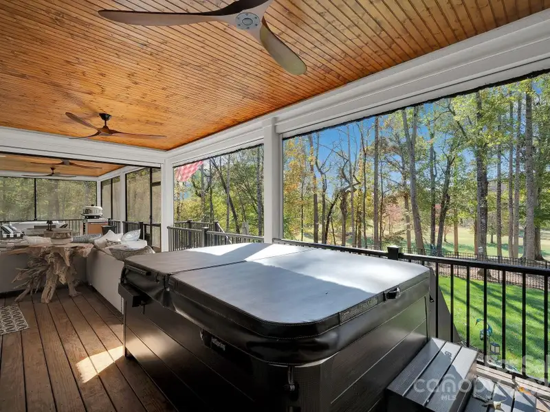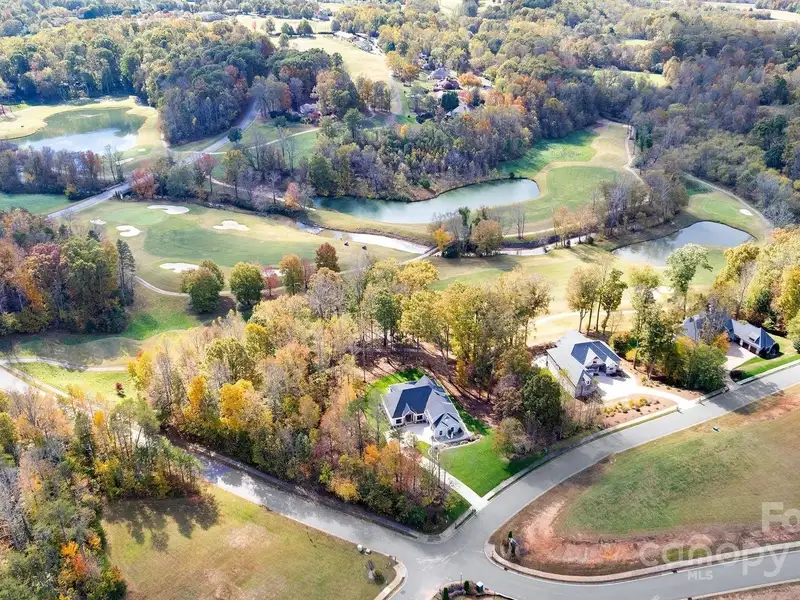 A truly exceptional, custom-built home perfectly positioned on 1.23 acres overlooking the 13th and 14th fairways of the prestigious Jones Golf Course at Rock Barn. Completed in 2022, this home offers privacy and stunning sunset and water feature vistas; a rare offering within this sought-after community. The open-concept main level features 10 ft ceilings, custom trim and wainscoting, crown coping, and casement picture windows framing the beautiful golf course views. The chef's kitchen is a showpiece, boasting a 48" dual-fuel range with commercial-grade hood, Cafe appliances with beverage center, marble backsplash to the ceiling, oversized quartz island with prep sink, instant hot water, glass rinser, pot filler, and custom solid maple cabinetry with built-in mixer lift, open shelving, and under cabinet lighting. A walk-through pantry with hidden Murphy door adds both charm and practicality. The primary suite is a private retreat featuring an exquisite spa-style wet room with curbless marble shower (dual heads + rain shower) and soaking tub enclosed in marble, along with a custom-built closet system and direct access to the laundry room for convenience. All bathrooms feature designer tile, high-end fixtures, and retractable sink heads. Outdoor living is at its best here. Enjoy a screened porch with retractable panels for an unobstructed view, a saltwater hot tub, and a fully equipped outdoor kitchen with sink, refrigerator, and countertop. Step down to a paver patio with a Pyro fire pyramid and under-deck storage space. Even more, the yard includes full irrigation, landscape lighting, and a fenced backyard. Additional highlights include an encapsulated crawl space, whole-house water filtration system, tankless gas recirculating water heater, and Generac generator with a dedicated panel for backup power. Three HVAC zones ensure year-round comfort. LP SmartSide siding, a stone mailbox, and flemished double front doors add timeless curb appeal. The oversized garage is designed for convenience with epoxy flooring, insulated doors, side-mount quiet lifts, a utility sink, hot/cold water spigot, and storage shelving. A separate golf cart bay and EV prewire offer flexibility for modern living. Every space has been maximized with thoughtful design; from oversized bedrooms with ample closets to a vaulted foyer with tongue-and-groove bead board ceiling. Even practical details have been elevated, like the central vacuum system with in-wall retractable hoses, and step lighting on the staircase. Become a member of the Rock Barn Country Club and enjoy access to world-class amenities including championship golf courses, a luxurious spa (do not need to be a member to access spa), fitness center, fine dining, and more; all within a peaceful, beautifully maintained setting. Experience the best of Rock Barn living and call 4111 Ridge Rd. NE your new home!