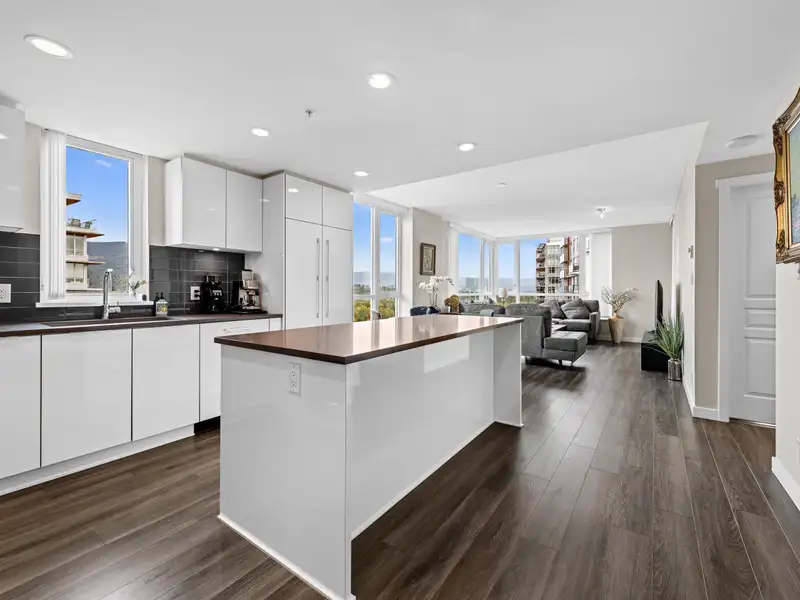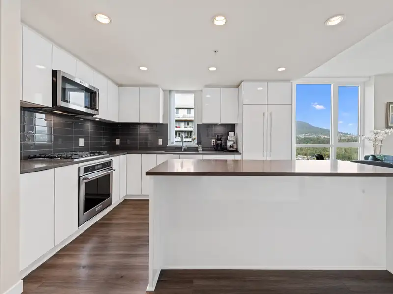 - Modern kitchen with large stone island