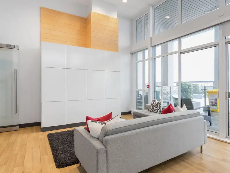 - Modern open living with sliding glass doors
