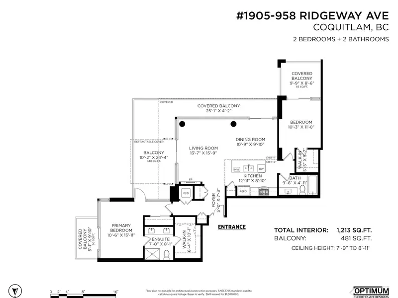 - Three private terraces totaling nearly 500 sqft