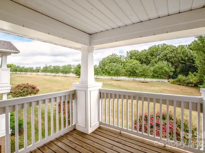 - Covered balcony with park-like view
