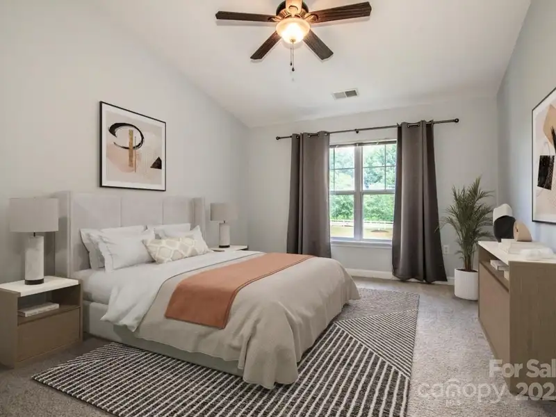 - Primary suite with walk-in closet and tiled shower