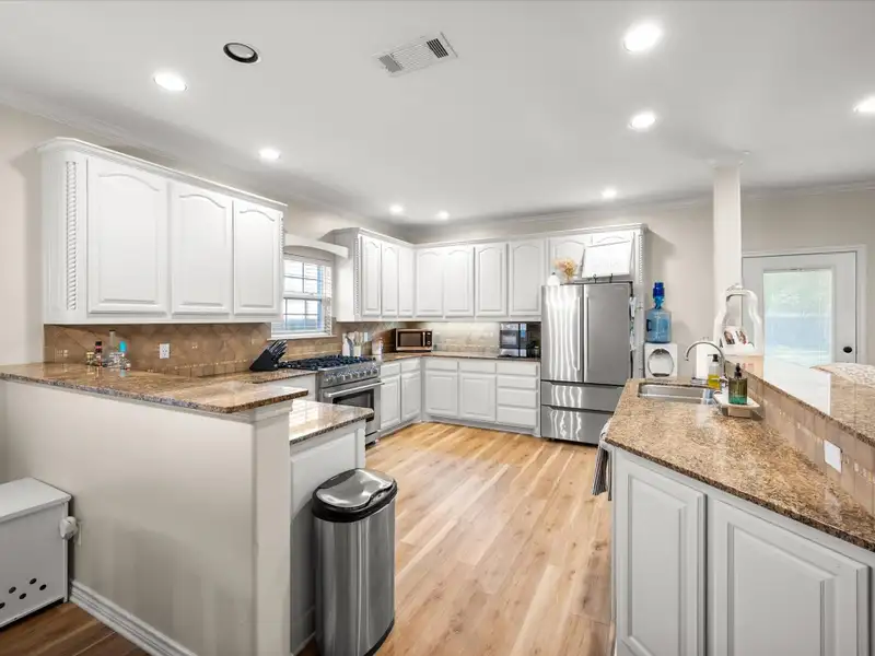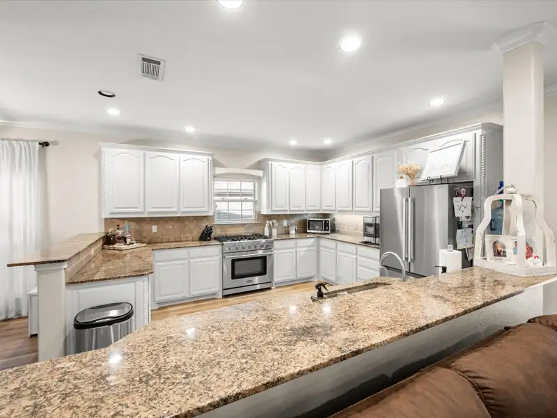 - Large kitchen with gas range
