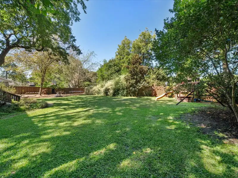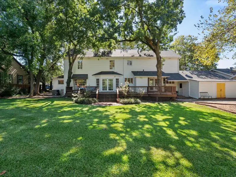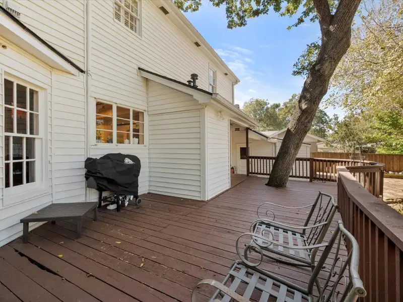 - Large fenced backyard with deck and patio