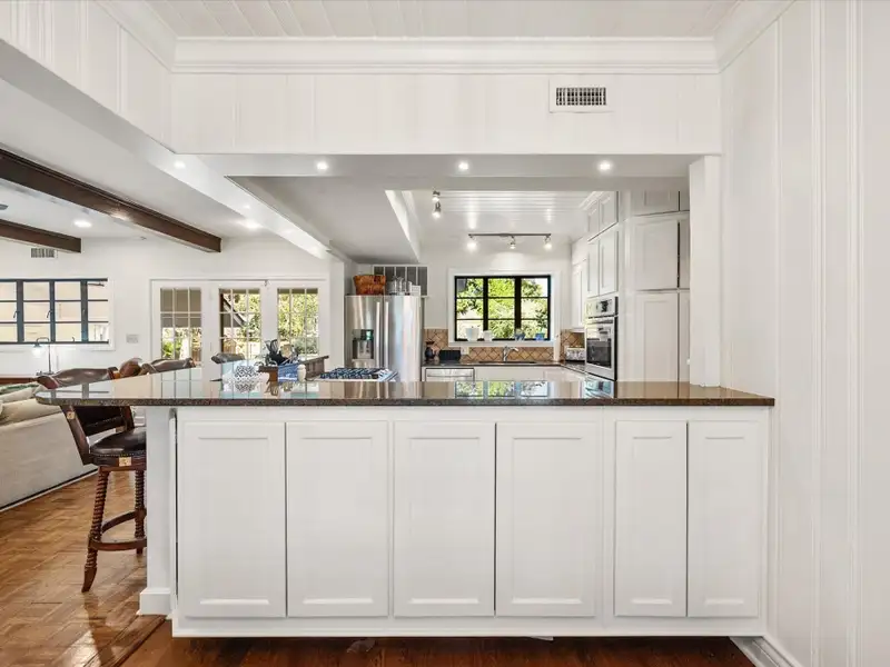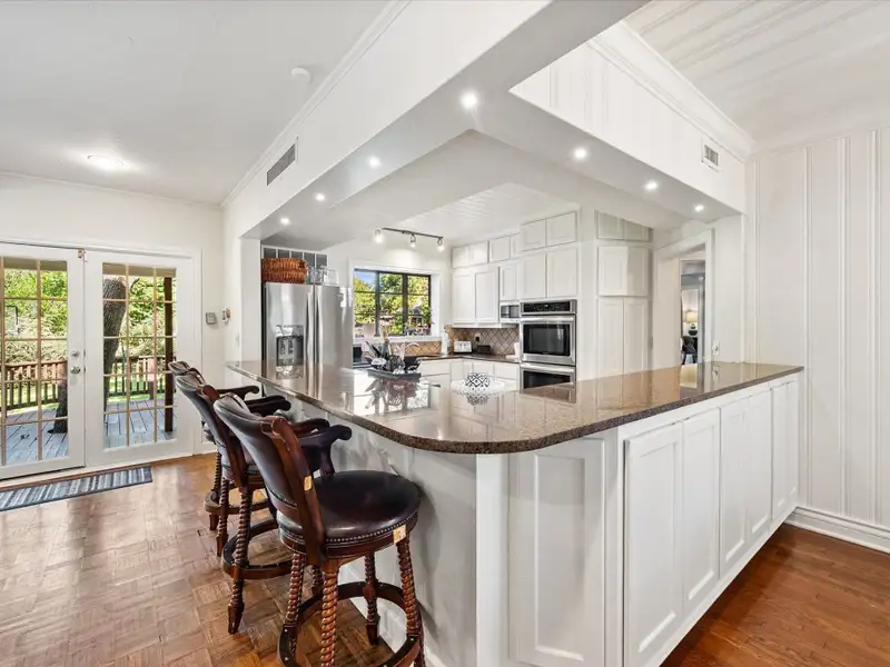 - Kitchen with granite counters and double ovens