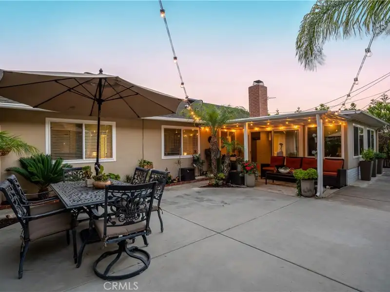 - Landscaped backyard with covered patio