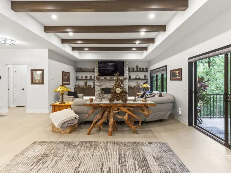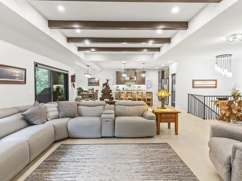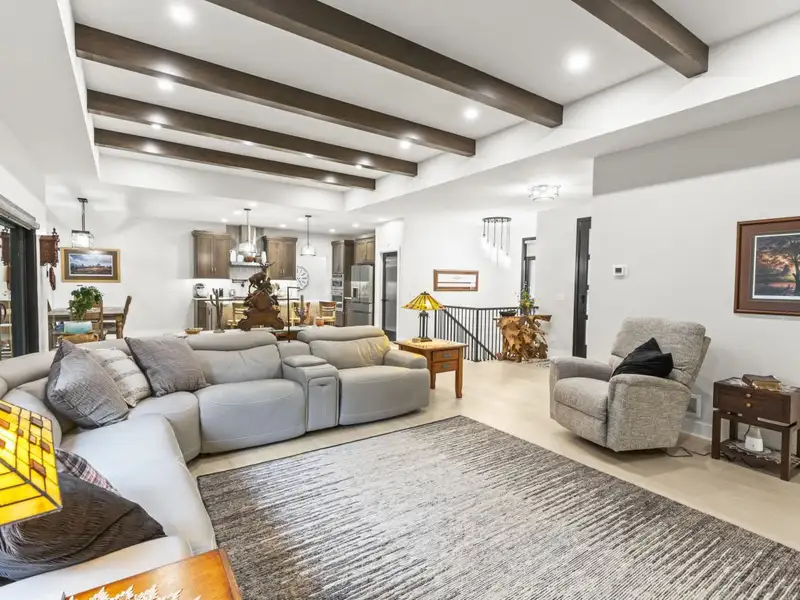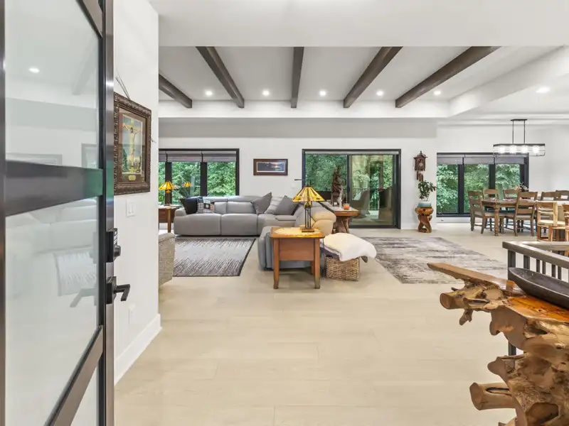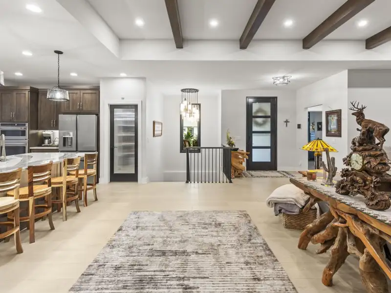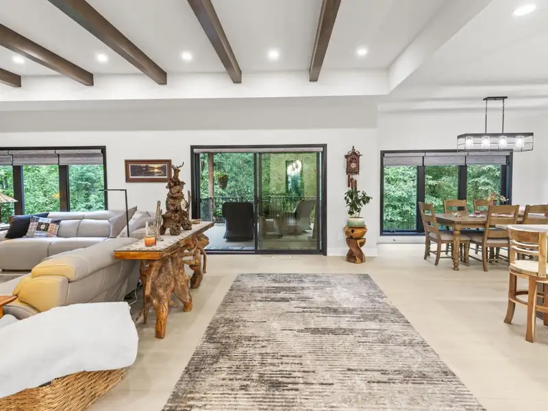 - Open concept with ceiling beams