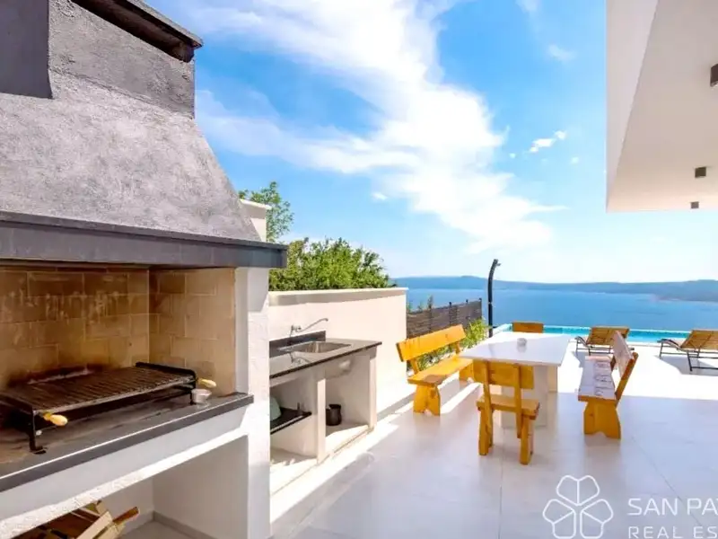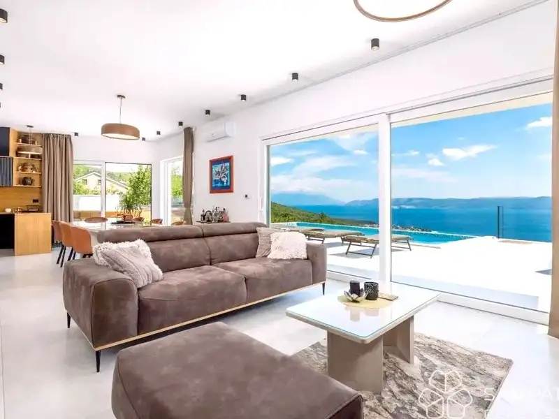 In an attractive location above Crikvenica, just 2 km from the sea, this beautiful modern villa is situated with a unique panoramic view of the island of Krk and the Kvarner Bay. This property offers the perfect blend of luxury, comfort, and functionality, making it an ideal home for living or a profitable investment in tourist rentals.