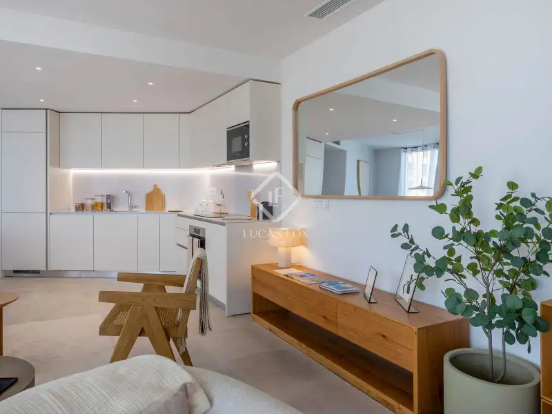 Dune has this new build apartment on the ground floor, with a modern design, open-plan rooms that maximize space and decoration in neutral shades for a modern aesthetic.