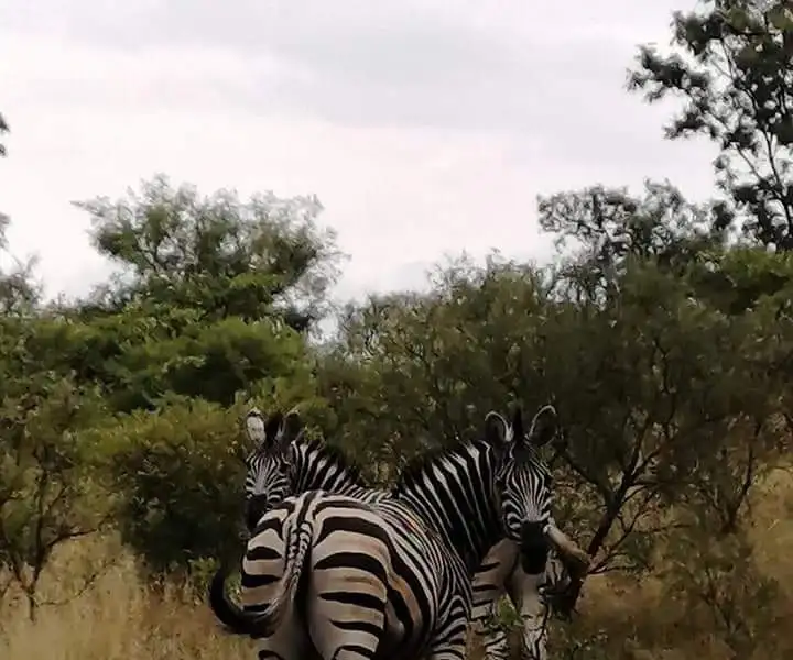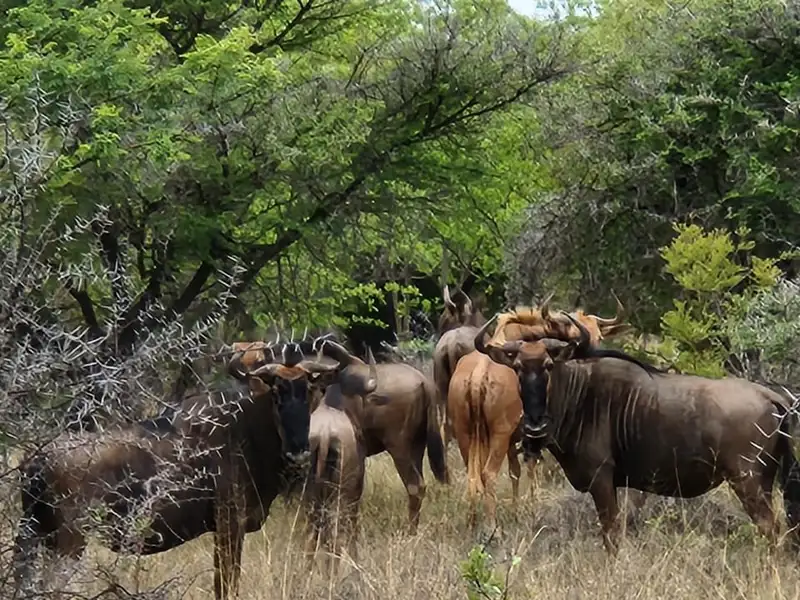 Wildlife in the area includes giraffe, zebra, blue wildebeest, blesbuck, and impala. Visitors may also encounter red hartebeest, kudu, nyala, baboons, monkeys, warthogs, and meerkats. Birdwatchers will enjoy the diverse species and indigenous trees.