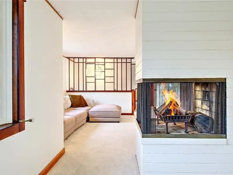 - Double-sided mid-century fireplace