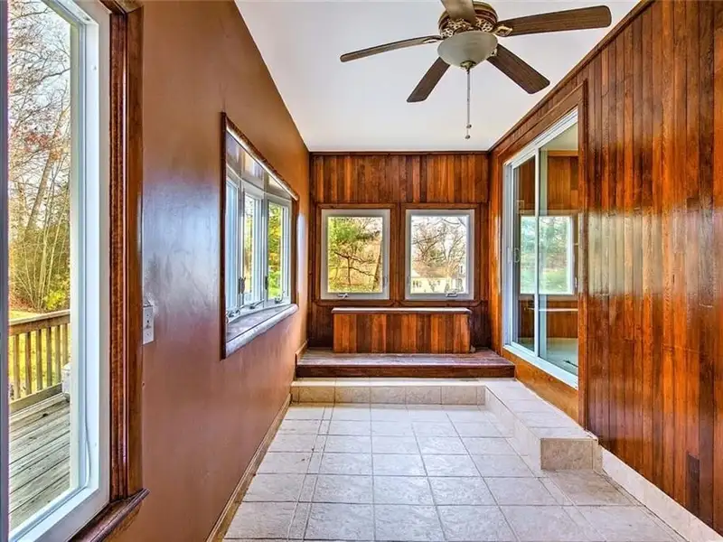 - Enclosed porch and spacious deck