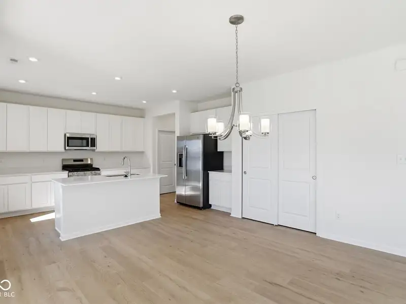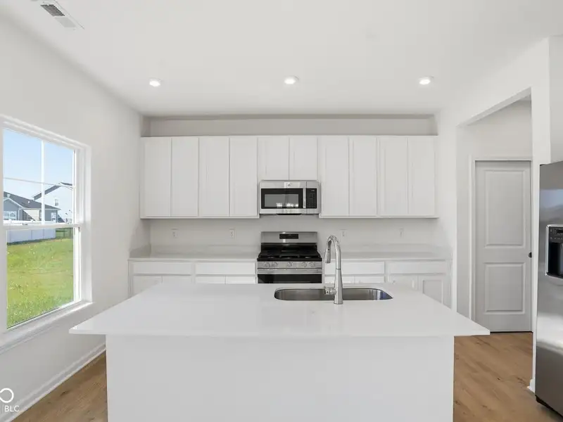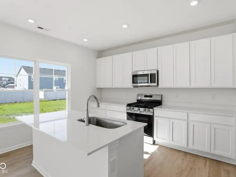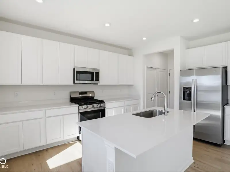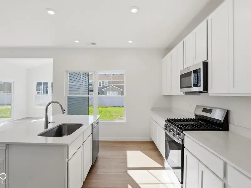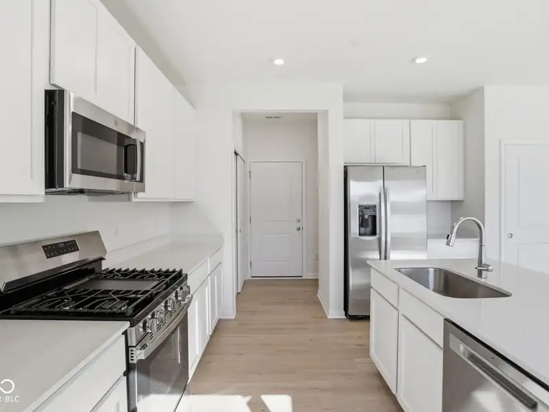 - Kitchen with quartz and stainless appliances